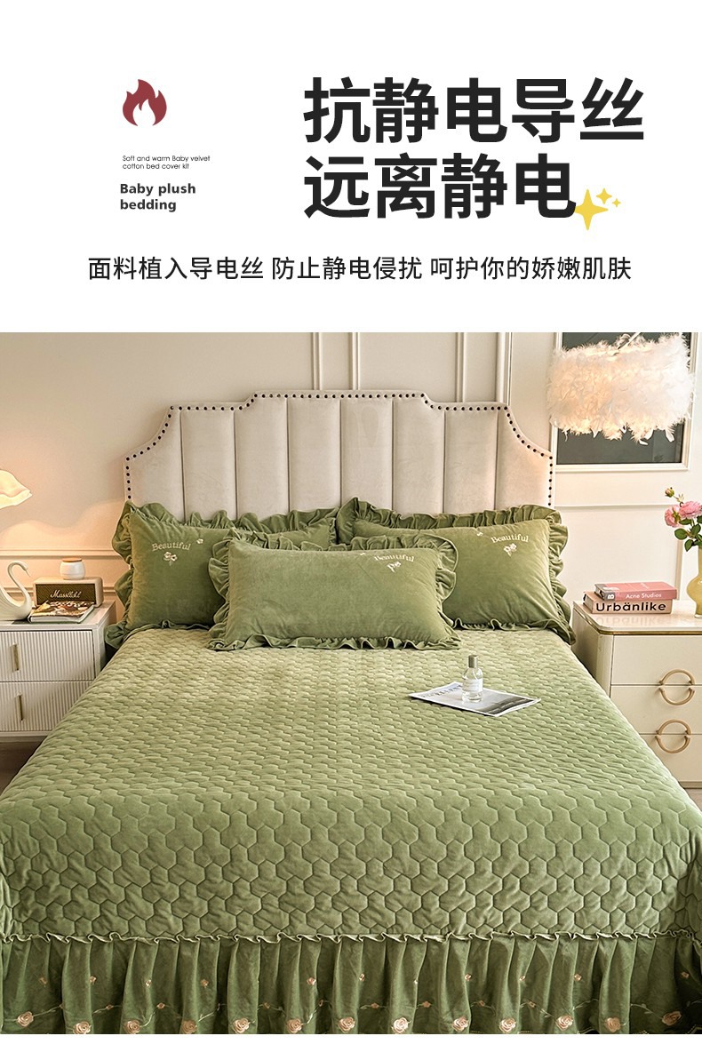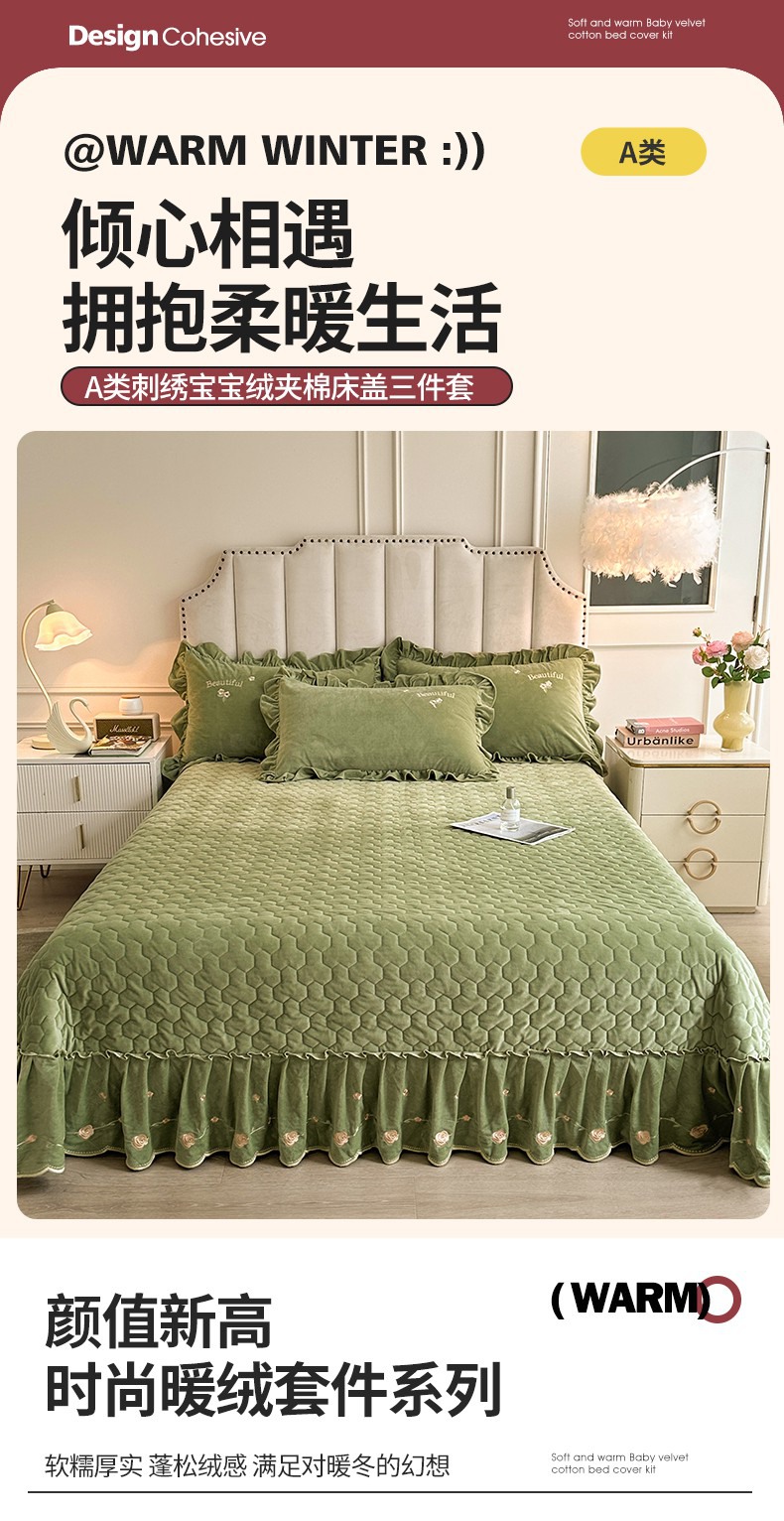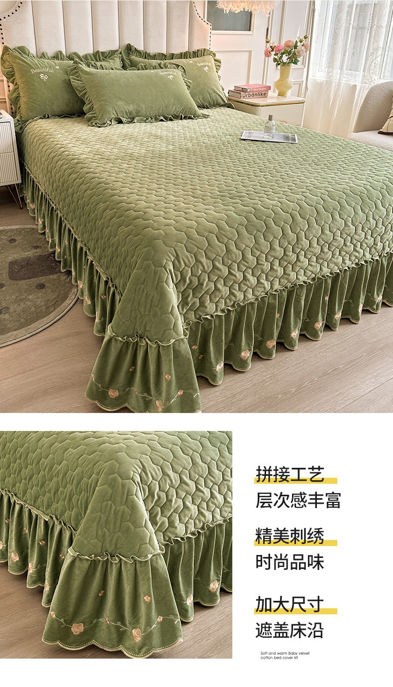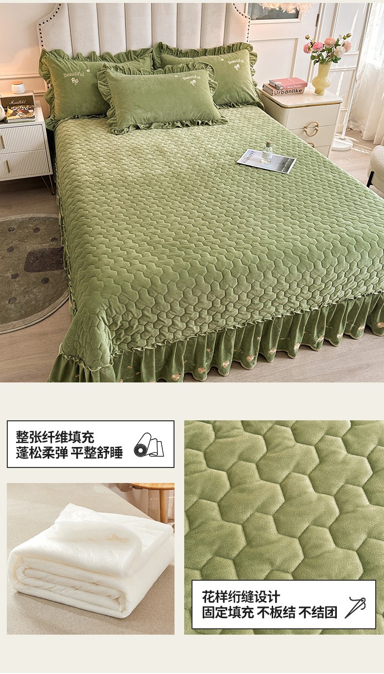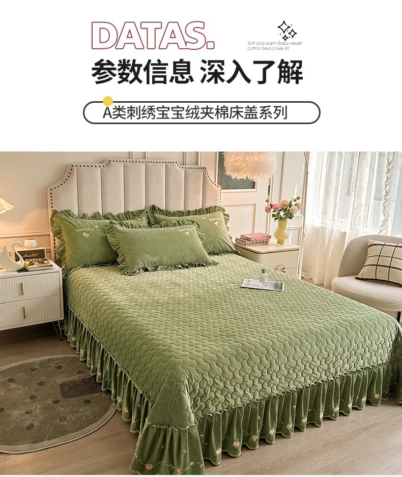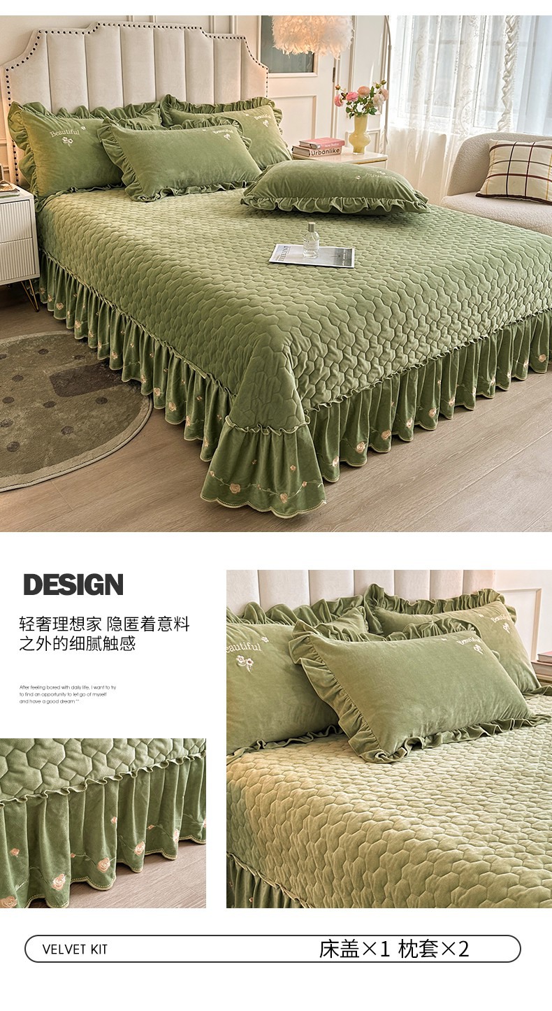 当前位置: 91家纺网 > 商品网购 > 床品套件 > 三件套 > 恒爱家纺 2024新款A类宝宝绒刺绣莫奈花园夹棉床盖款三件套 莫奈花园 牛油果绿