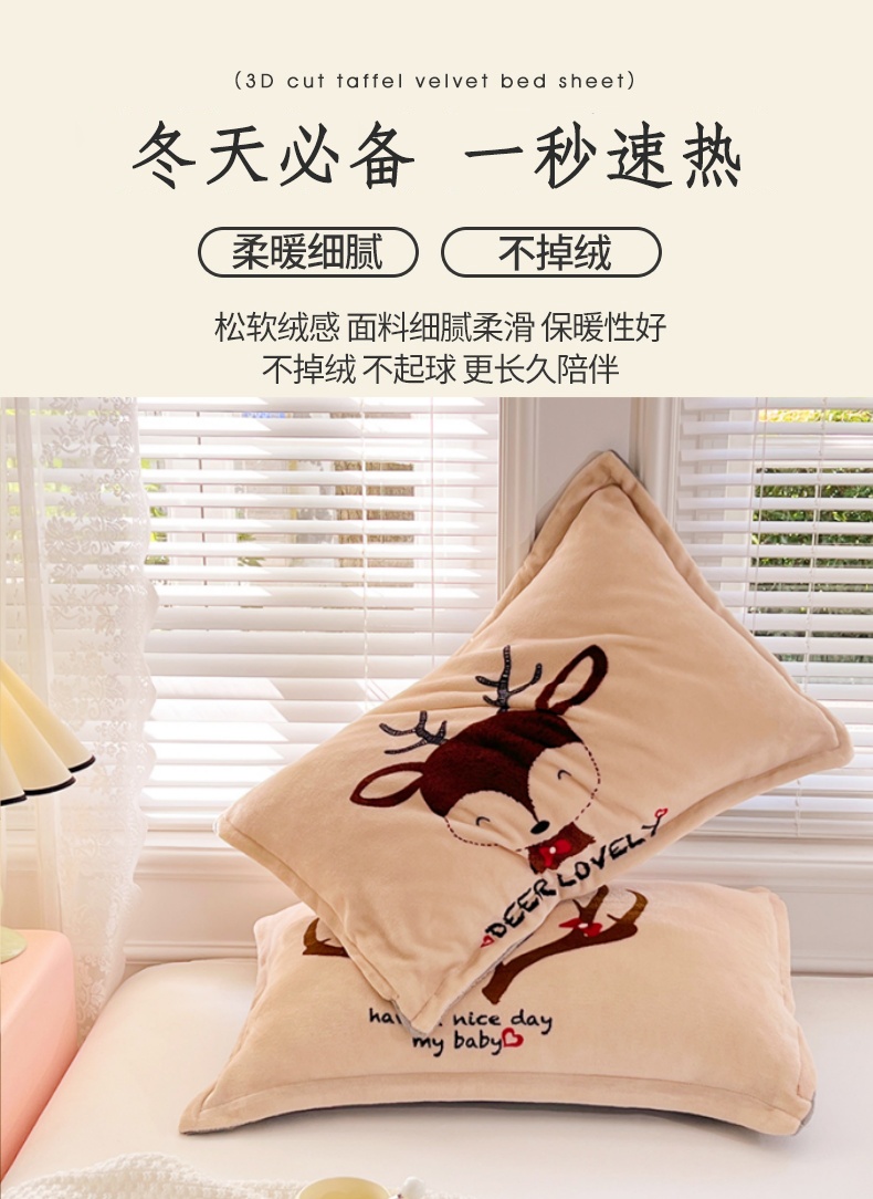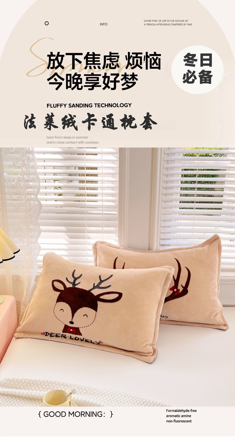 商品名称:圣比熊 2025新款冬季法莱绒枕套牛奶绒枕头套单人宿舍珊瑚绒枕芯套 快乐麋鹿