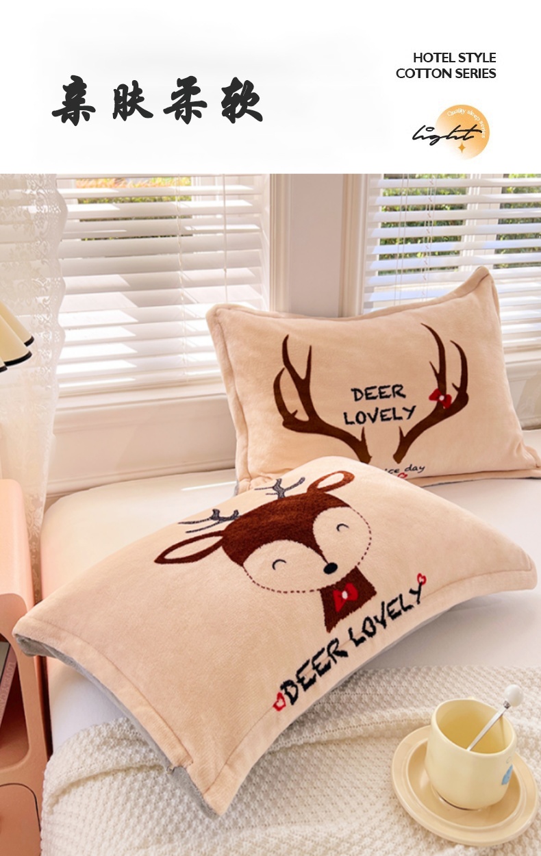 圣比熊 2025新款冬季法莱绒枕套牛奶绒枕头套单人宿舍珊瑚绒枕芯套 快乐麋鹿
