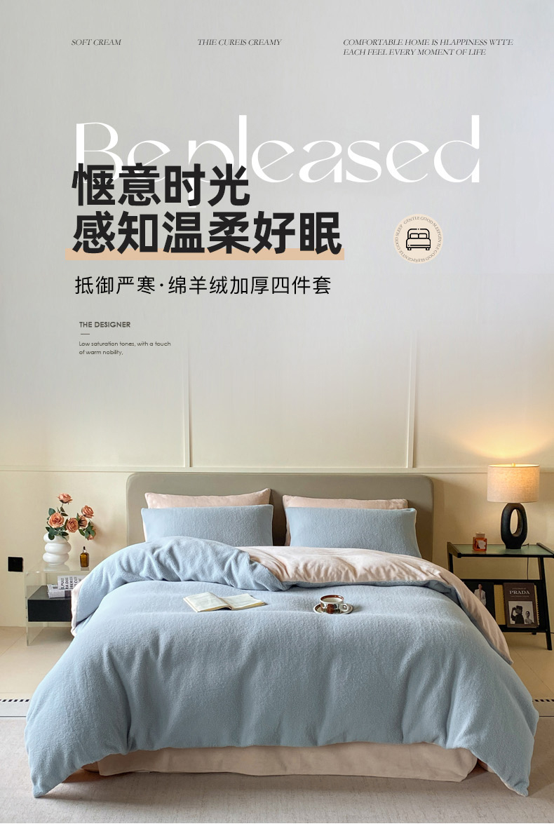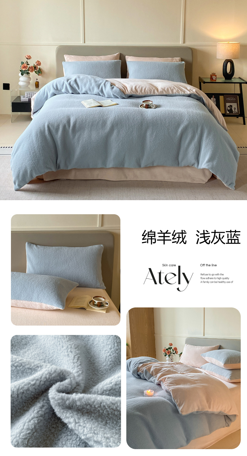 当前位置: 91家纺网 > 商品网购 > 床品套件 > 四件套 > 其它四件套 > 万盛家纺 2025新款棉羊绒加厚四件套 绵羊绒浅灰蓝