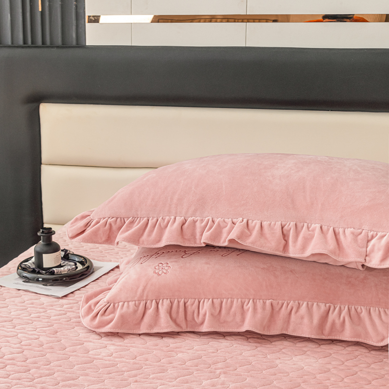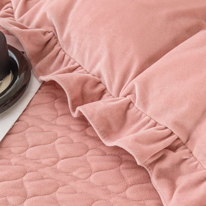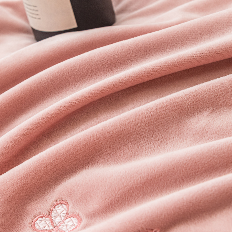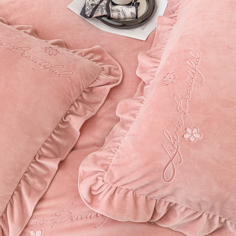 (总)乐嘉盈 2025年新款纯色雕花牛奶绒四件套,粉色