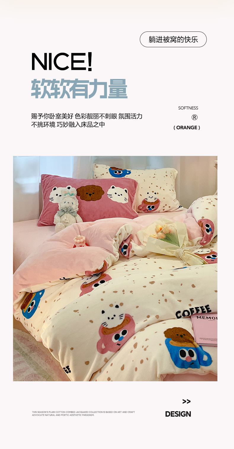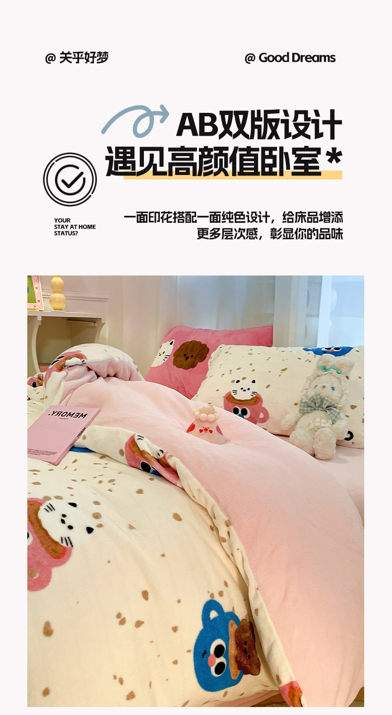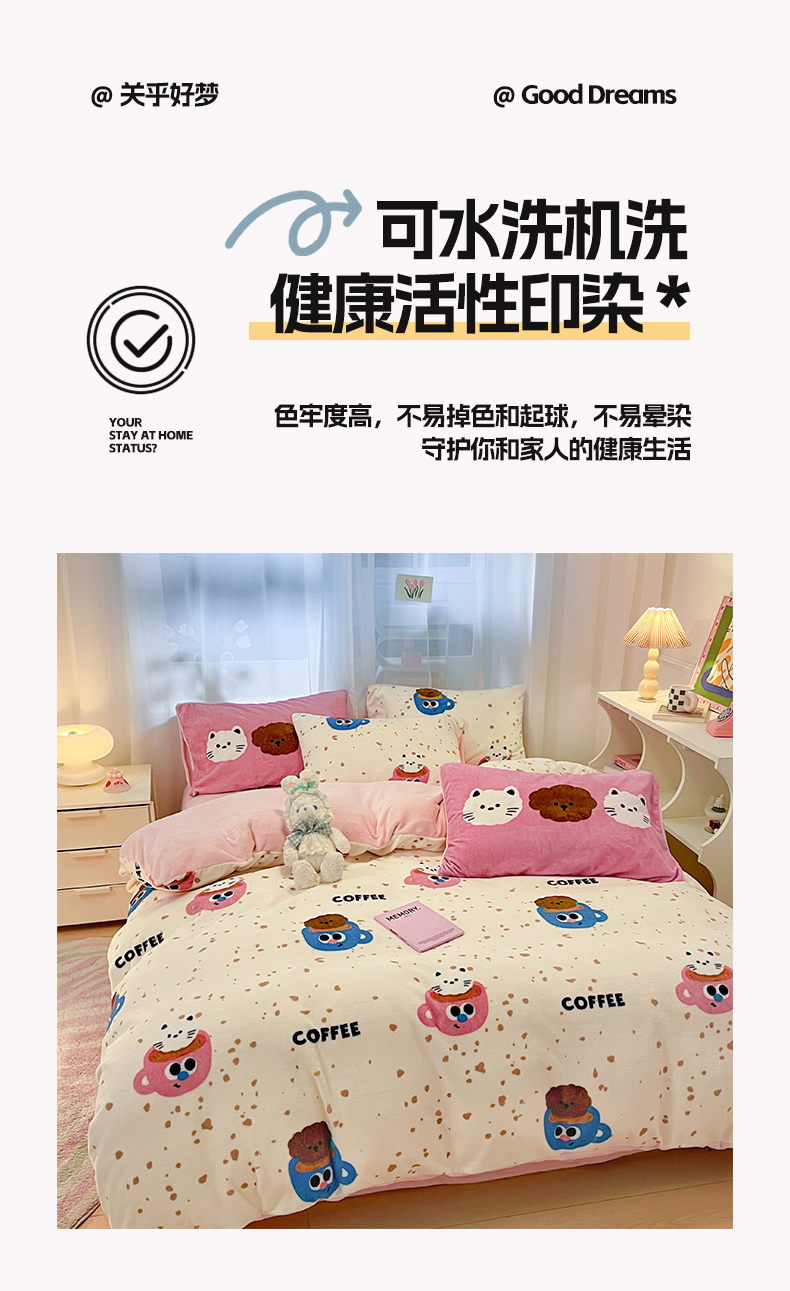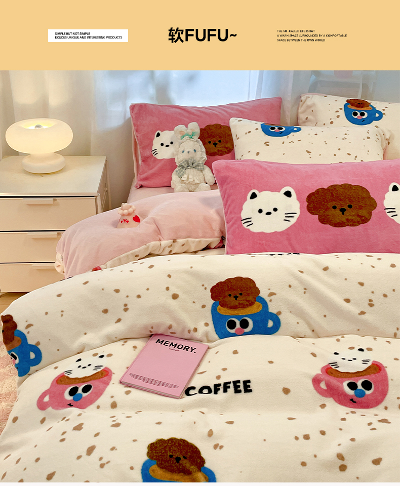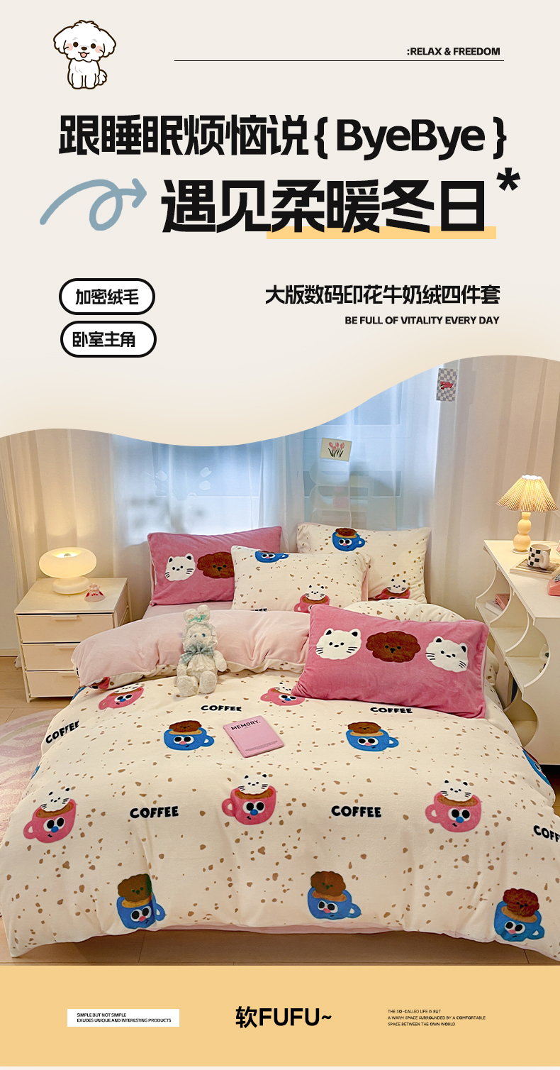 (总)如一 2025新款高克重大版数码印花牛奶绒四件套,毛毛狗,猫咪酱,俏皮狗,色彩猫,小熊仔,熊猫咖,游乐园,粉伙伴,拉兔咖,萌宠黄,萌宠绿,萌派对,围巾狗,线条狗,小粉喵,小花喵,小伙伴