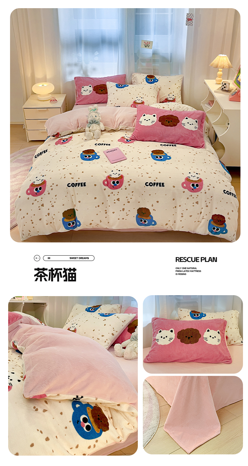 商品名称:如一 2024新款数码枕套印花高克重牛奶绒四件套 茶杯猫