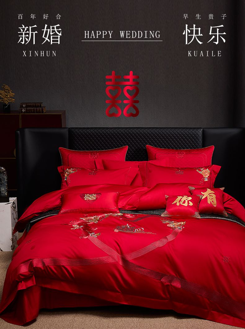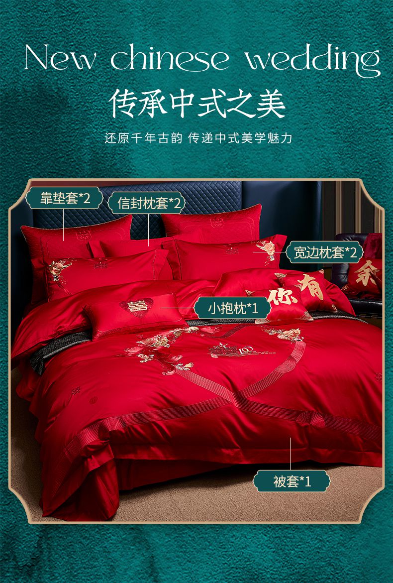 当前位置: 91家纺网 > 商品网购 > 床品套件 > 四件套 > 长绒棉四件套 > 高大尚婚庆馆 2025秋冬新款长绒棉臻棉系列婚庆款多件套 牵手一生-红