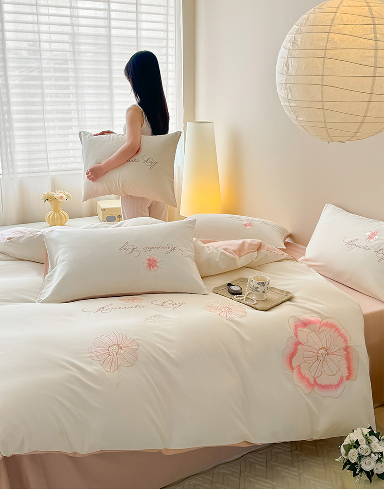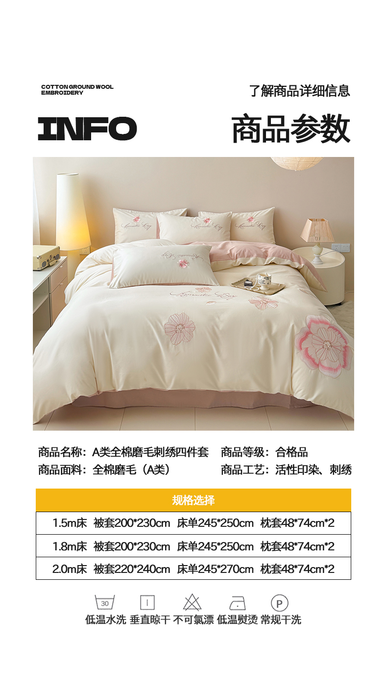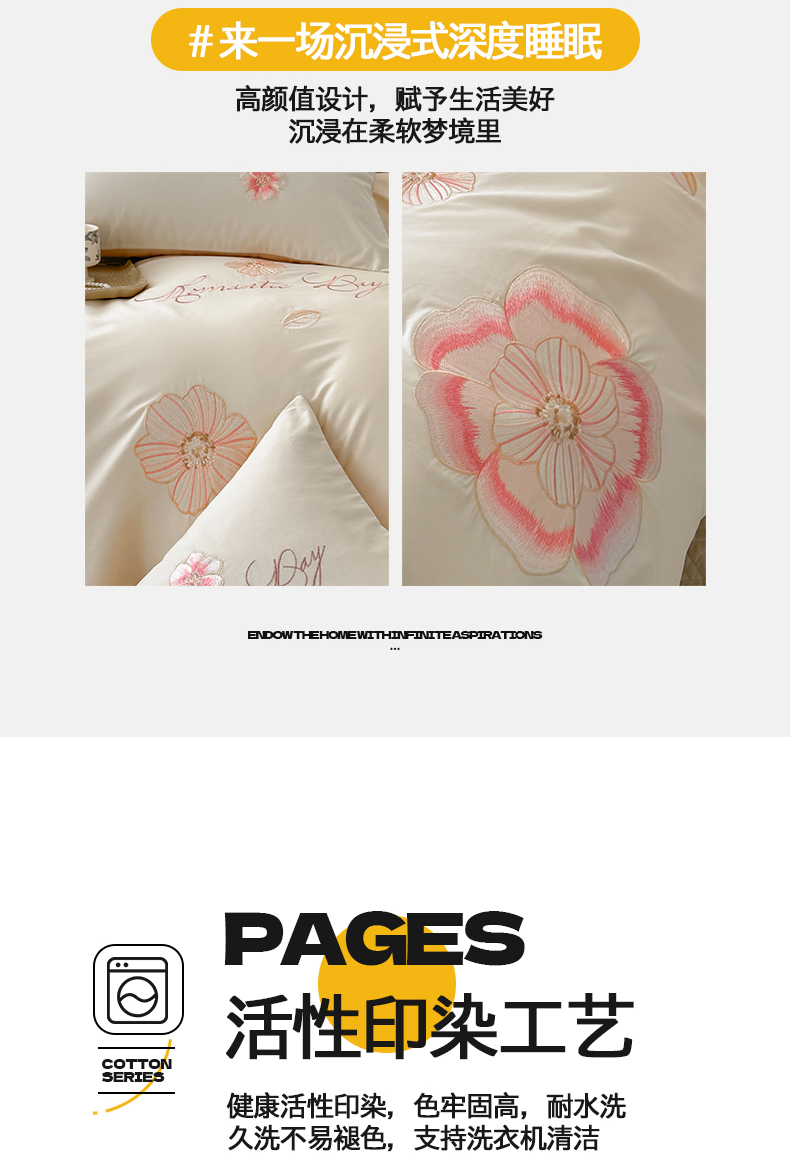 商品名称:典曼家纺 2024新款A类高精密24*21支磨毛绣花四件套-汀兰 汀兰-雪月白