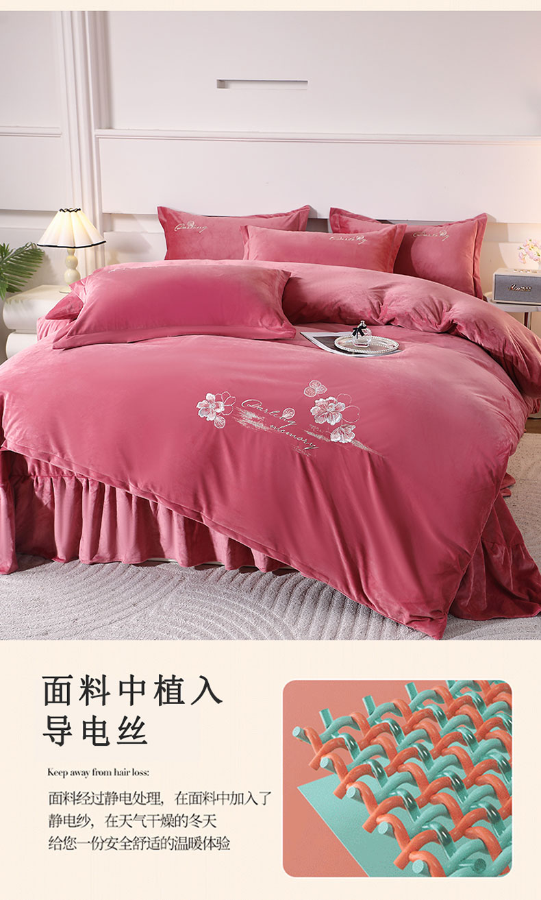 商品名称:(总)2024新款母婴级花边床单款婴儿绒刺绣四件套