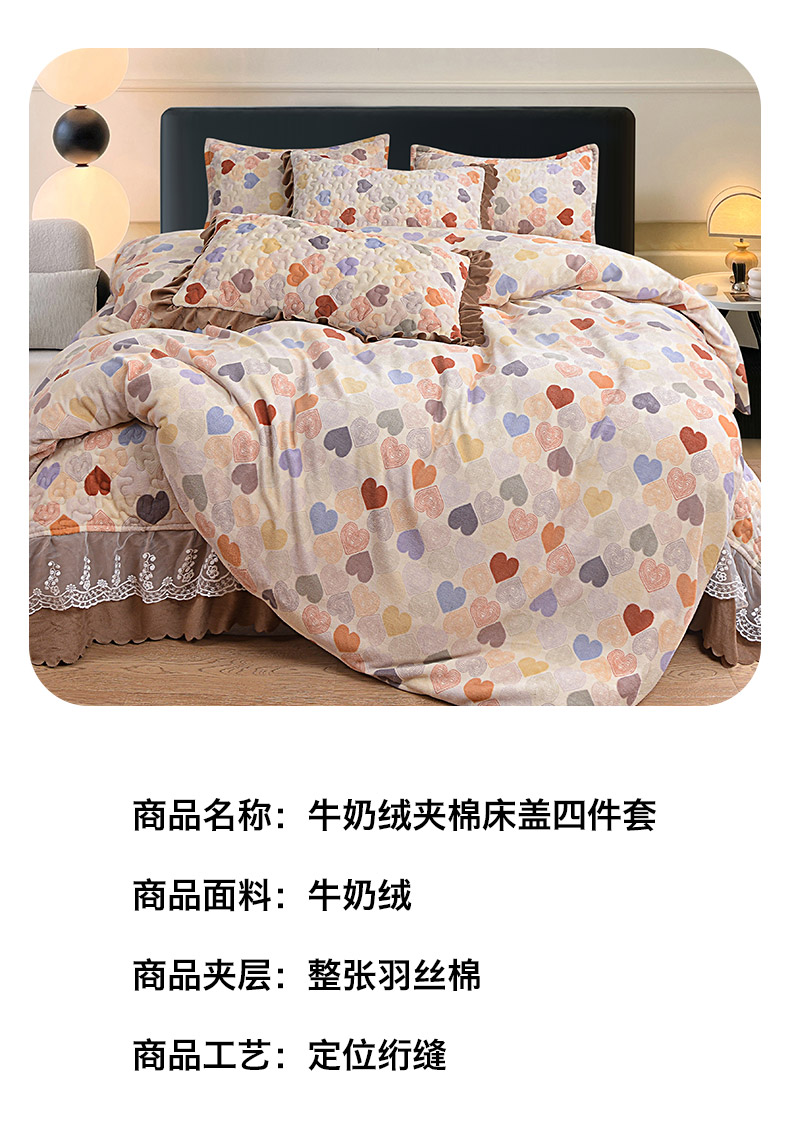 (总)梦柏家纺 2025新款牛奶绒夹棉床盖四件套,蓓思,波点,叠翠流金,蝶枝翘,繁花,粉色玫瑰,花团锦簇,花语,桔子,拉布布,恋爱山茶,绿荫,伦伯特,梦蝶,沐晨,秋意暖花,甜心,霞光,香甜,向日葵,小碎花,优朵,kt公主,花季物语,美丽花园