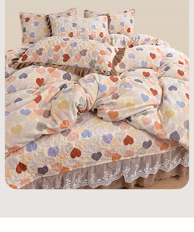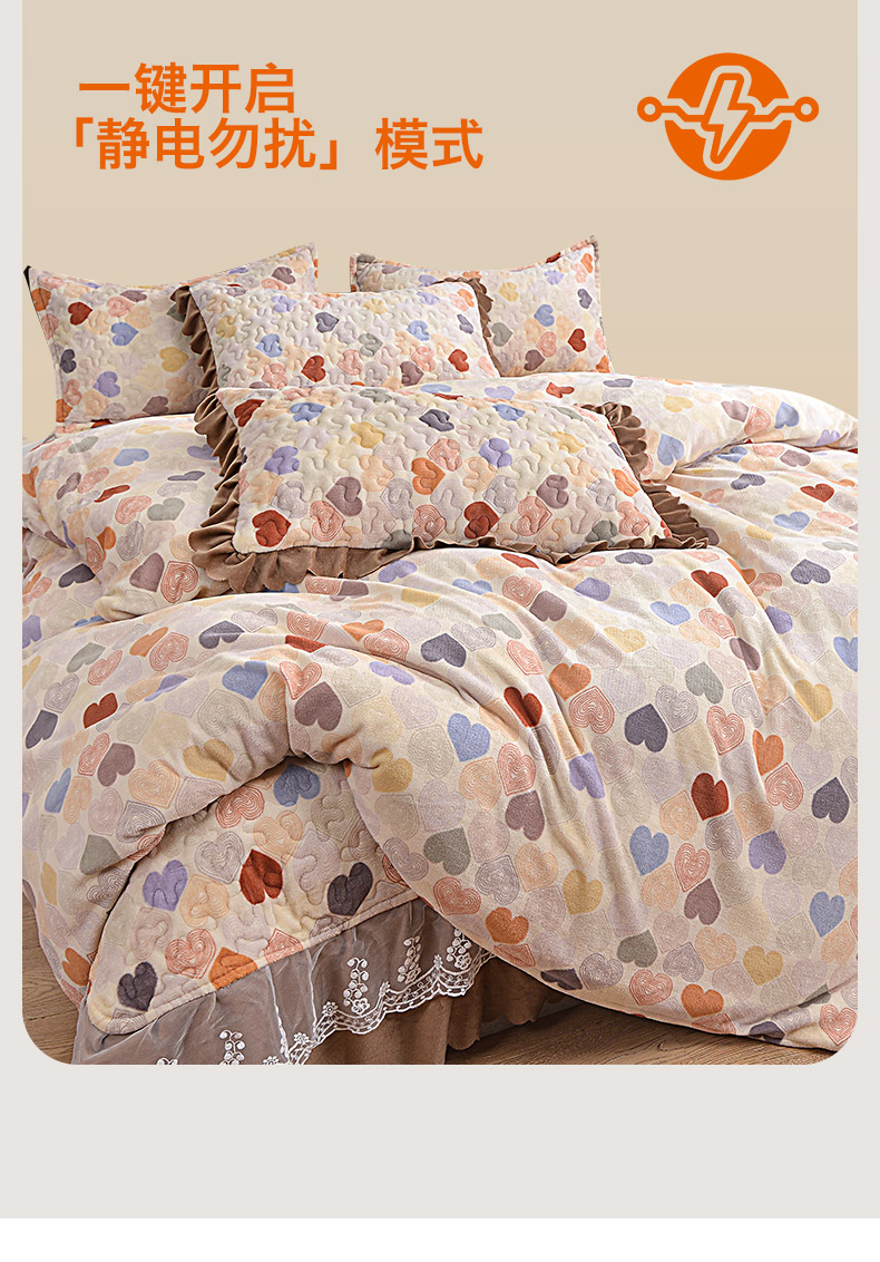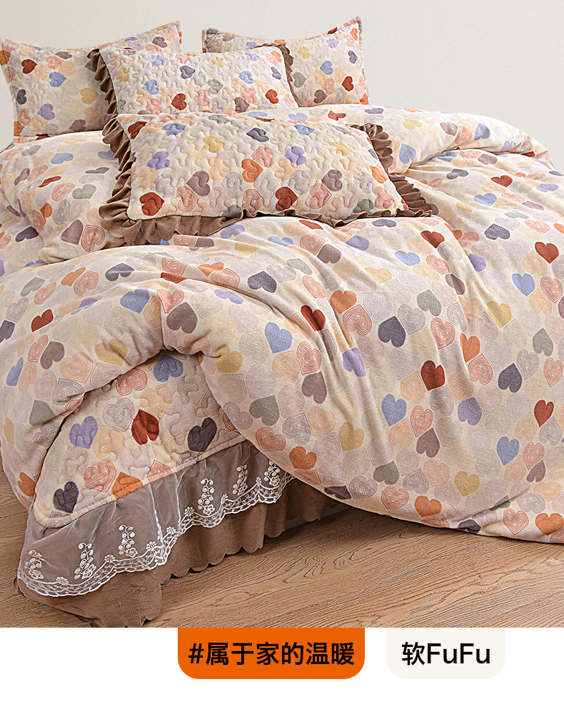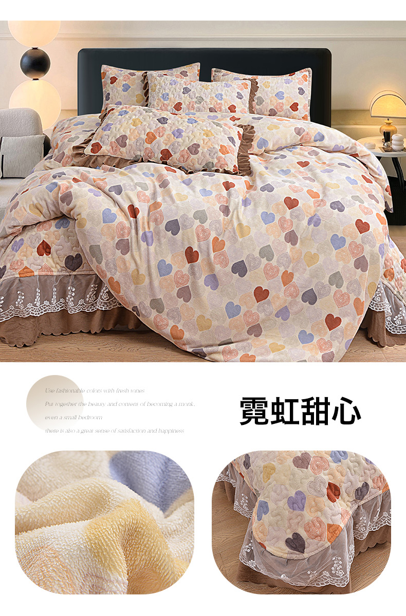 商品名称:2024新款亲肤牛奶绒夹棉床盖四件套 霓虹甜心