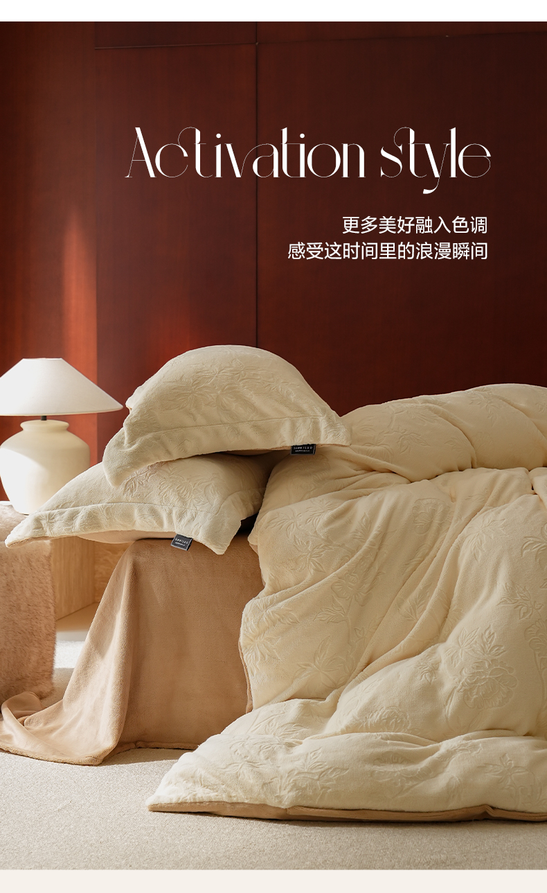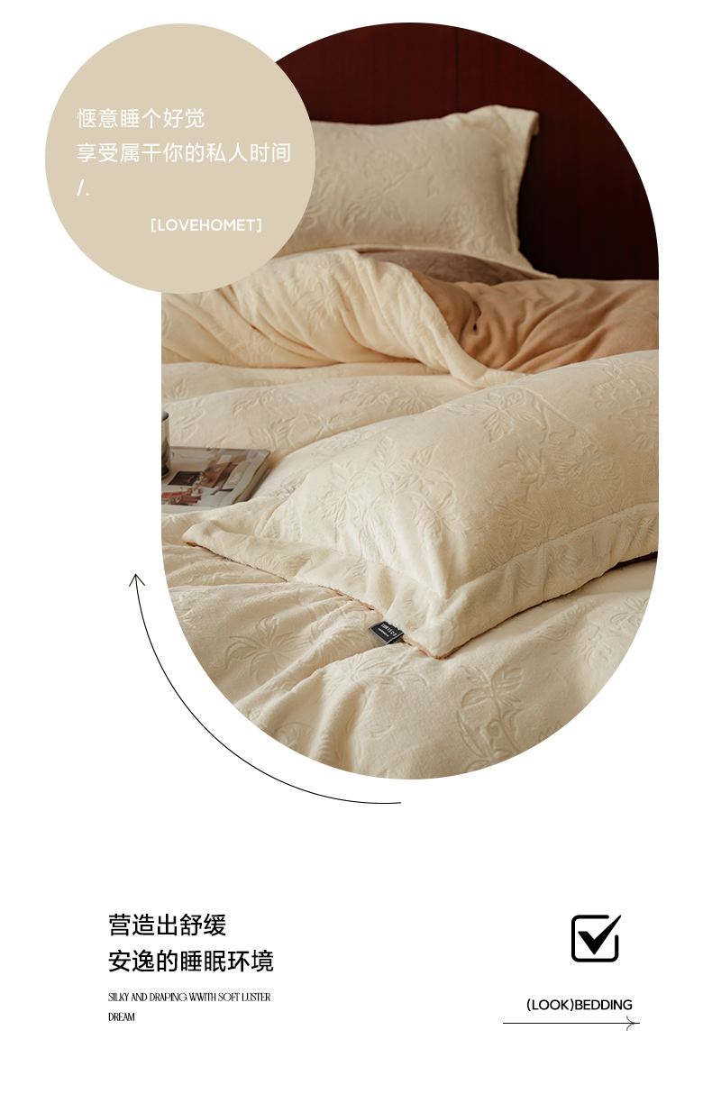 商品名称:三味舒屋 2025新款雕花牛奶绒四件套香榭丽系列 香榭丽绿