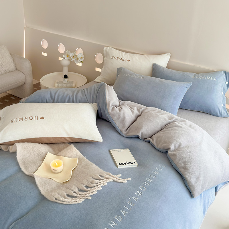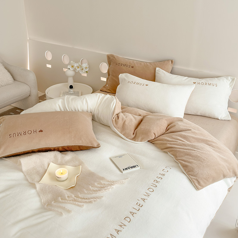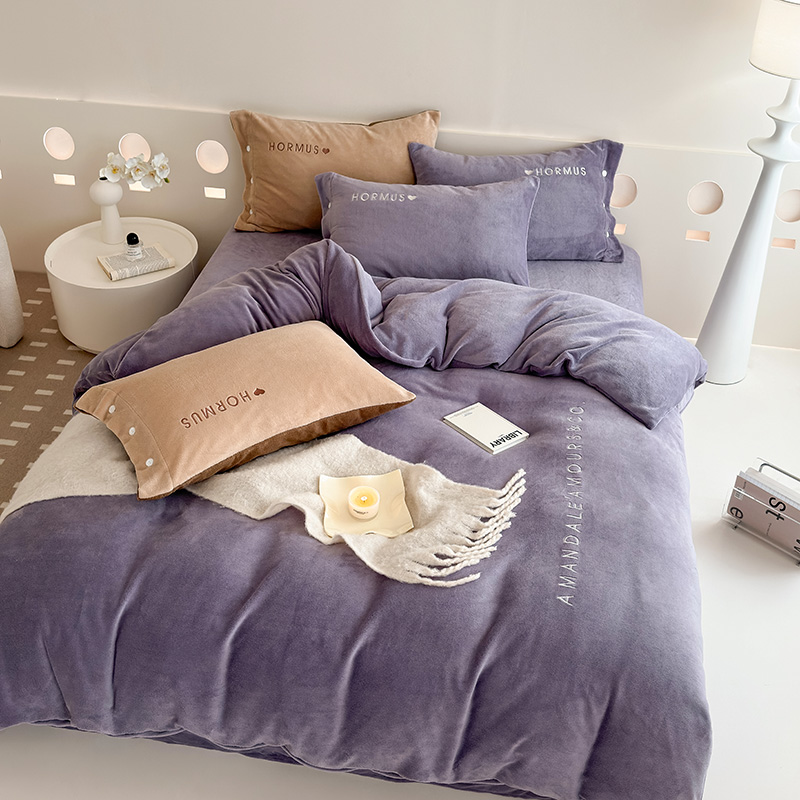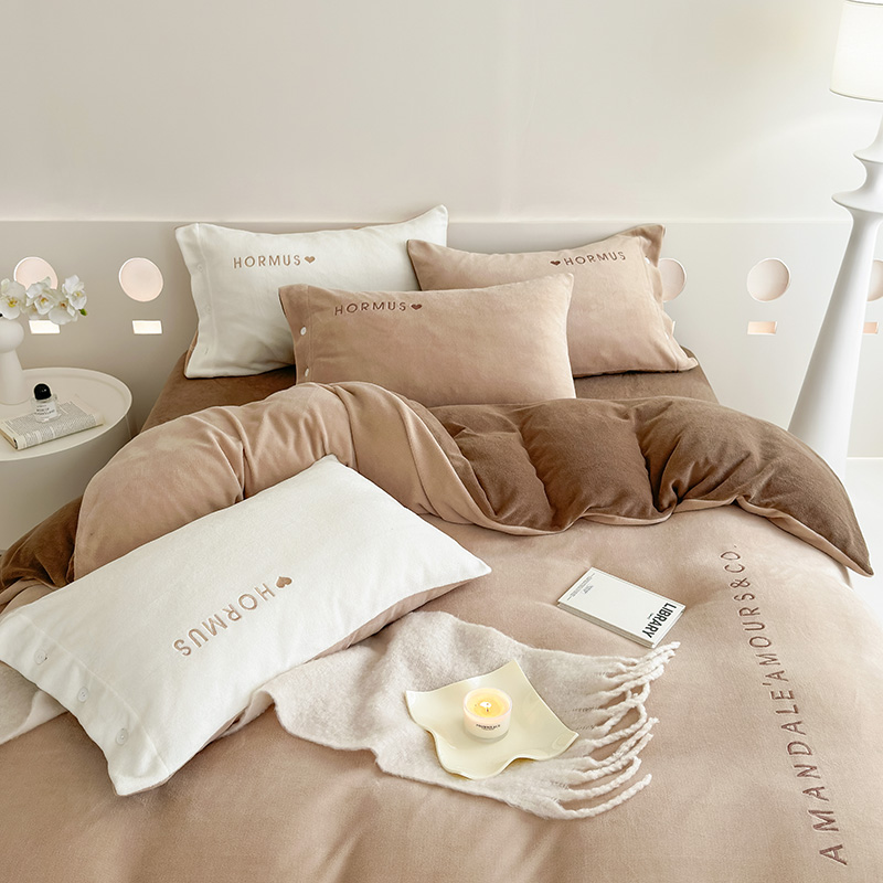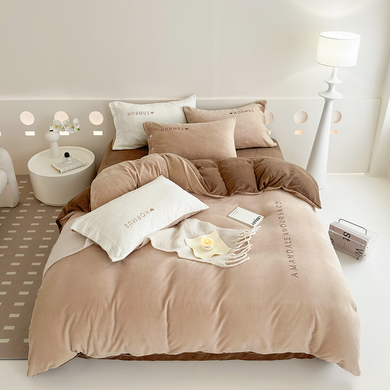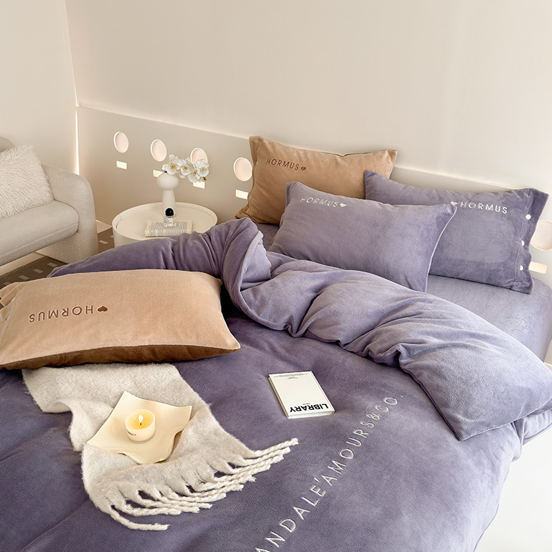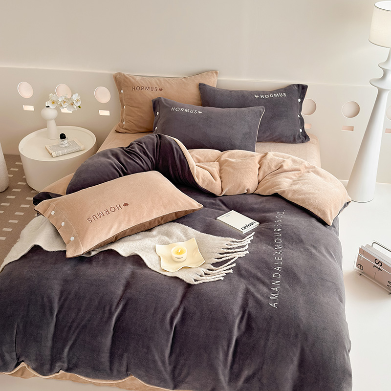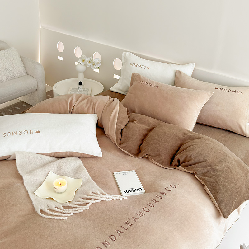 (总)潘朵拉家纺 2024新款字母绣花纯色系列牛奶绒四件套