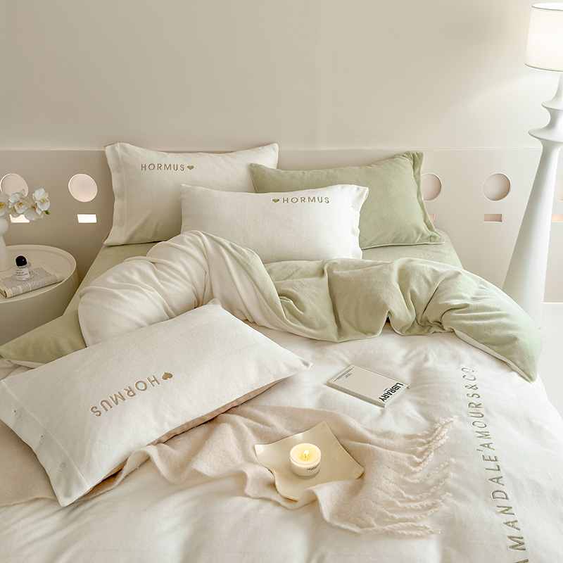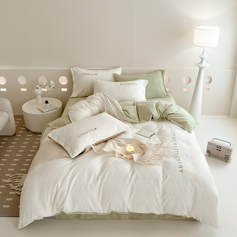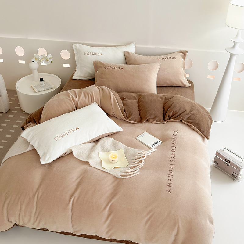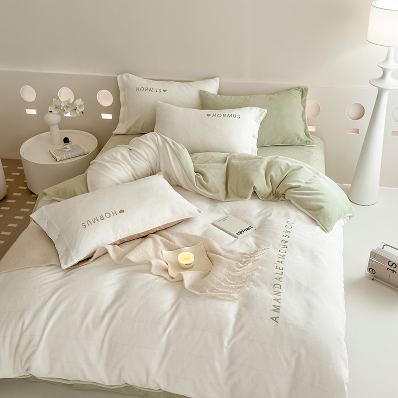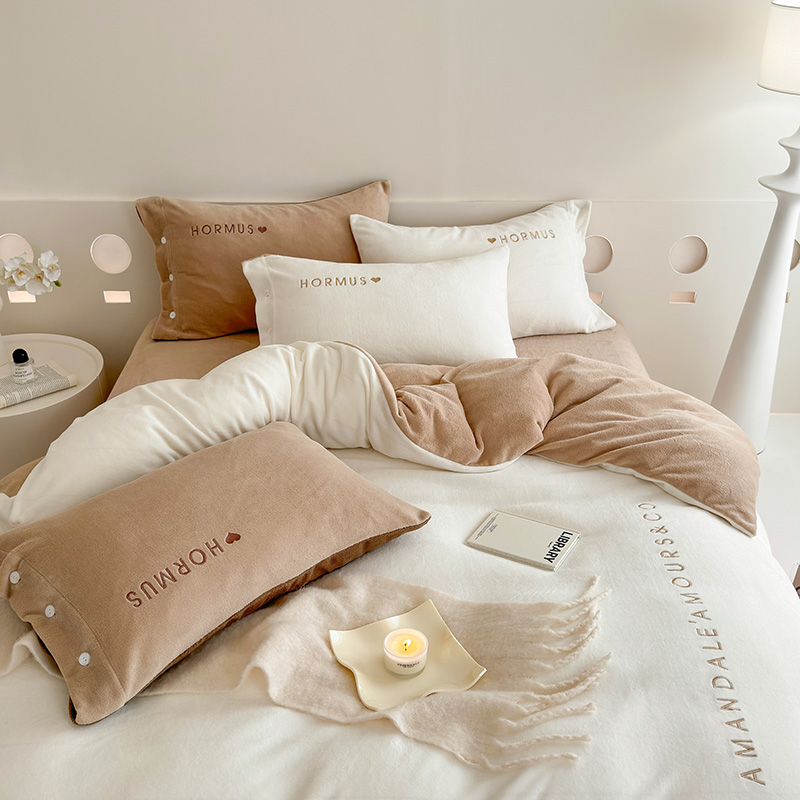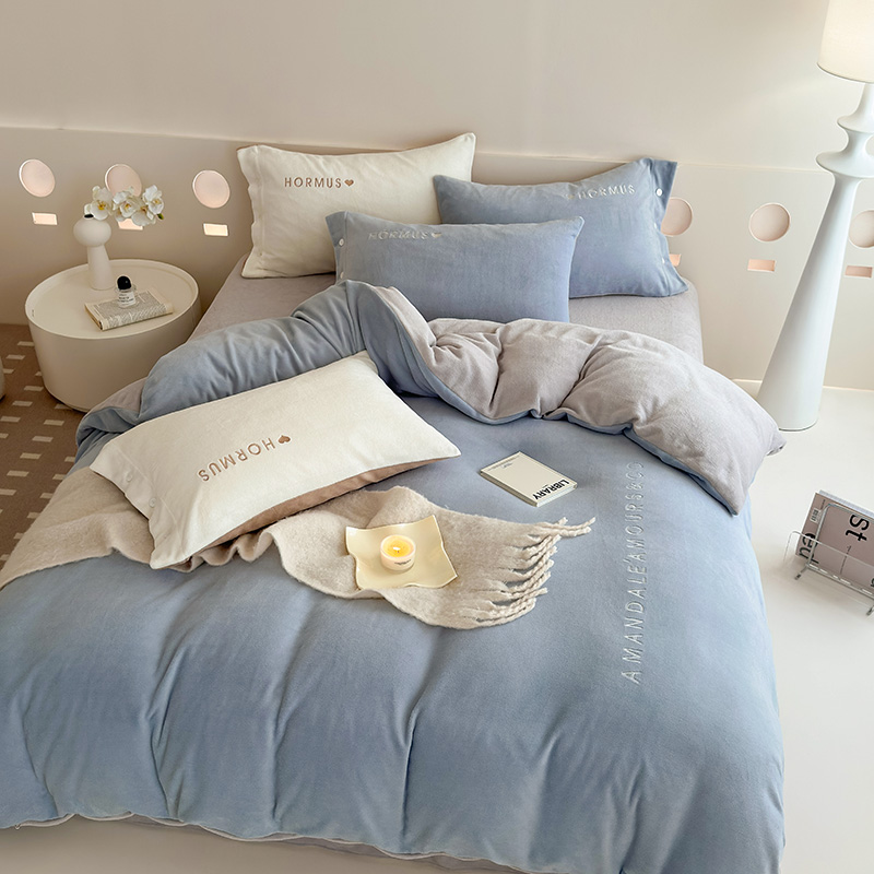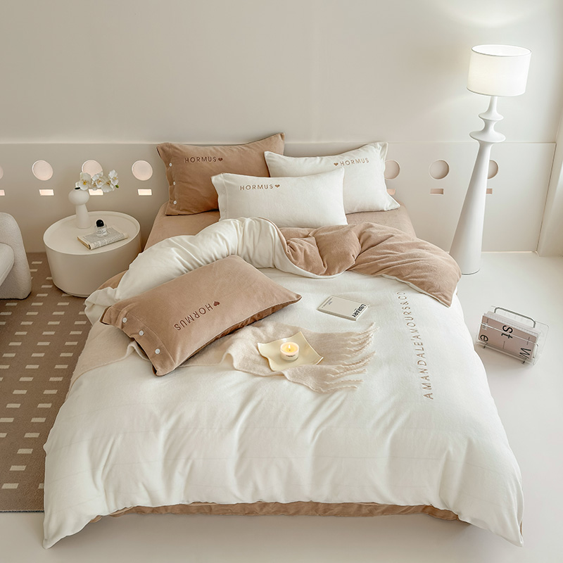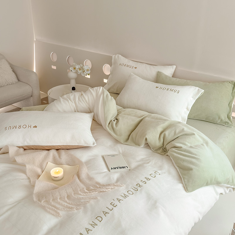 (总)潘朵拉家纺 2024新款字母绣花纯色系列牛奶绒四件套