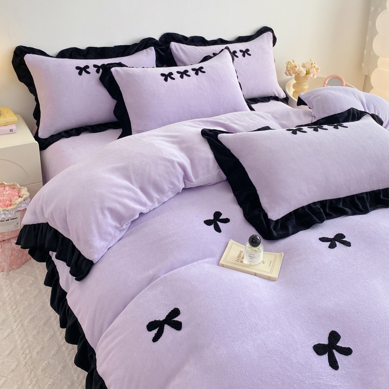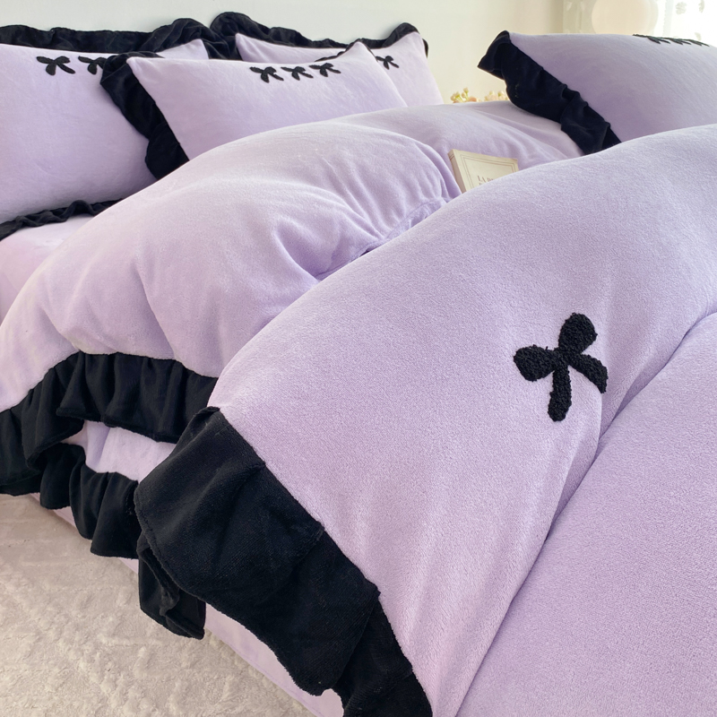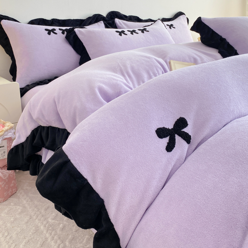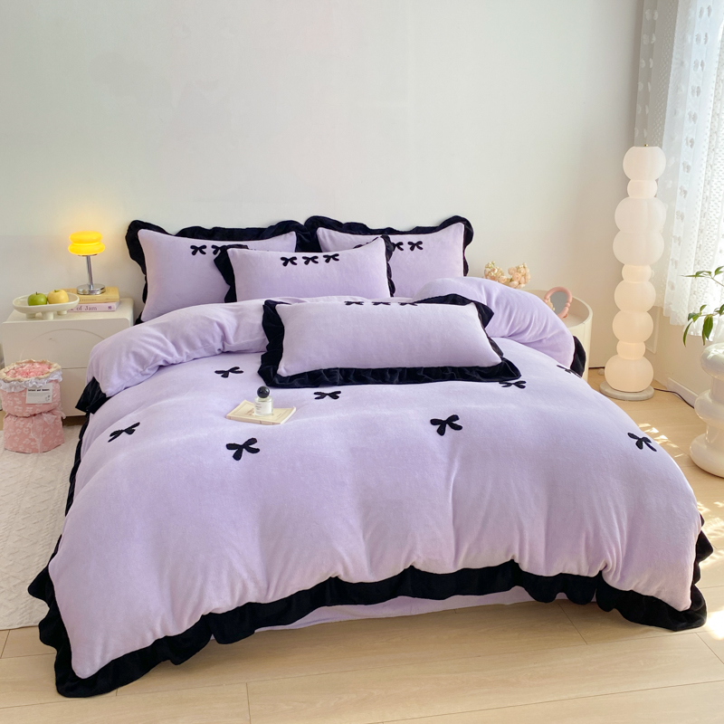 商品名称:梦莱斯 2024新款黑边绣花牛奶绒四件套 蝴蝶结-紫