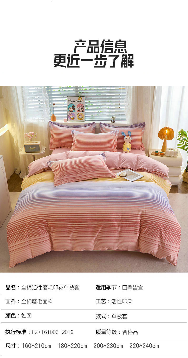 商品名称:牧笛缘家纺 2024新款全棉磨毛单被套 安琪拉