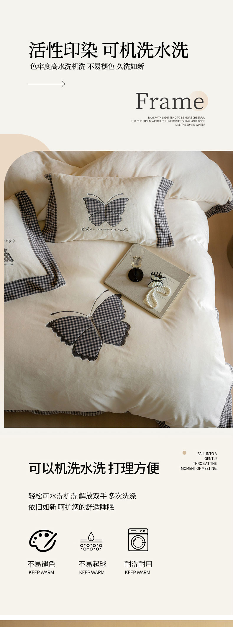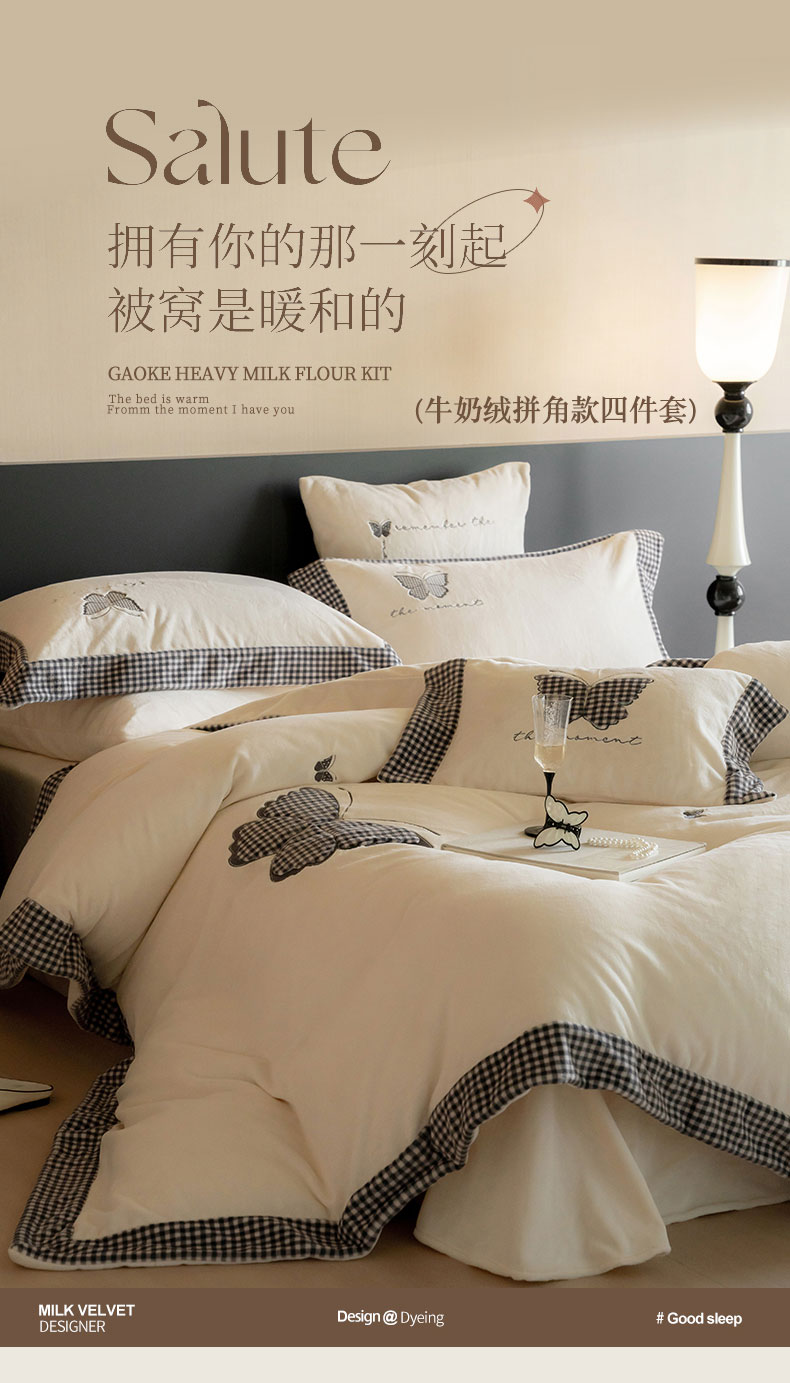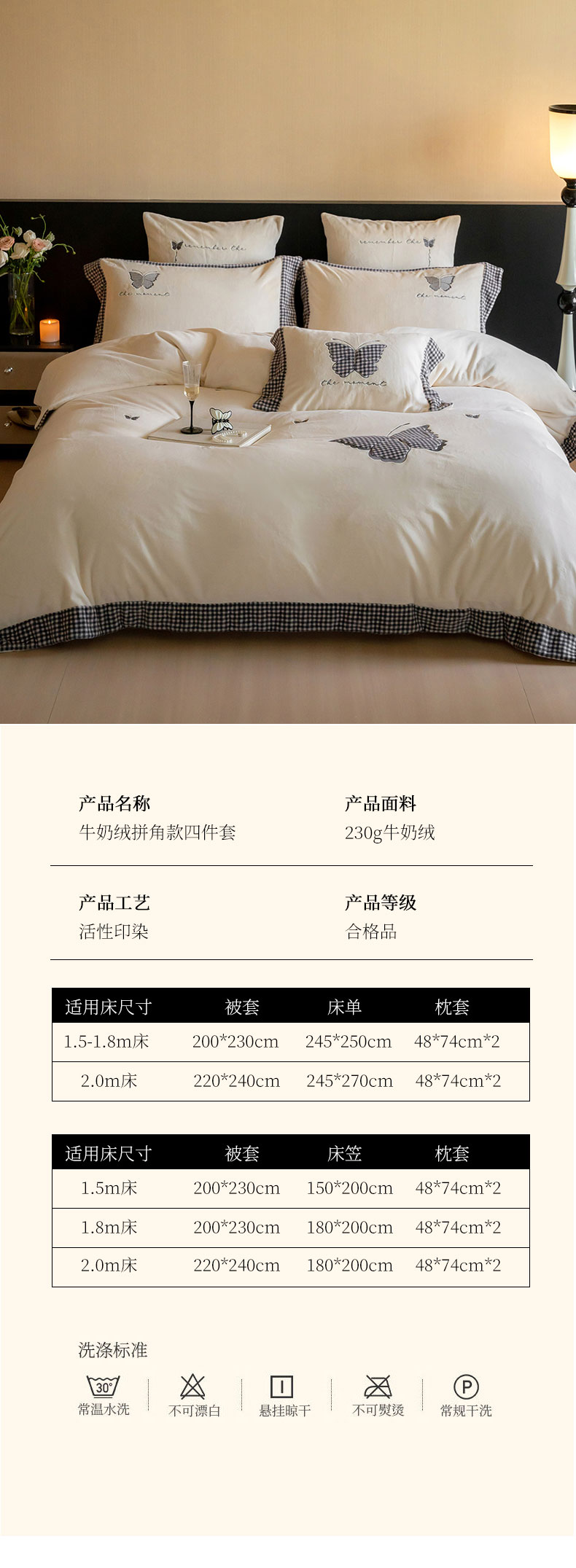 商品名称:(总)FORTWO家纺2024新款230G牛奶绒拼角款四件套-许愿蝶