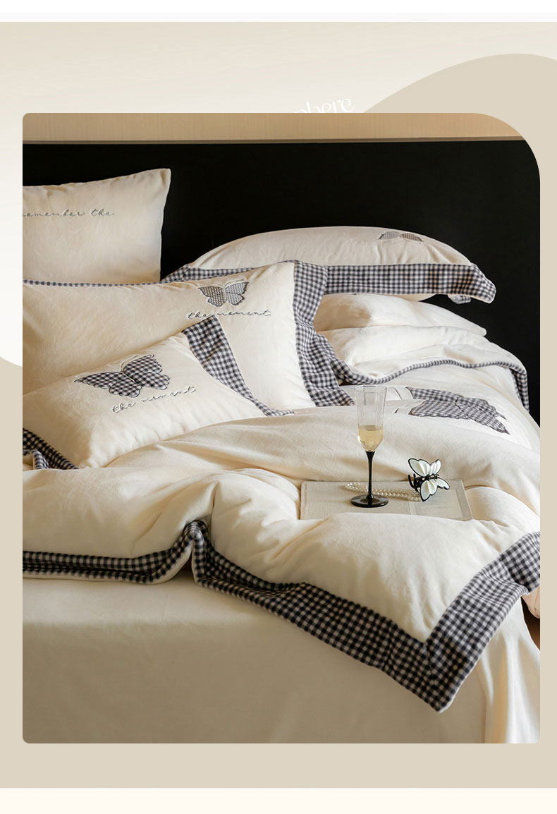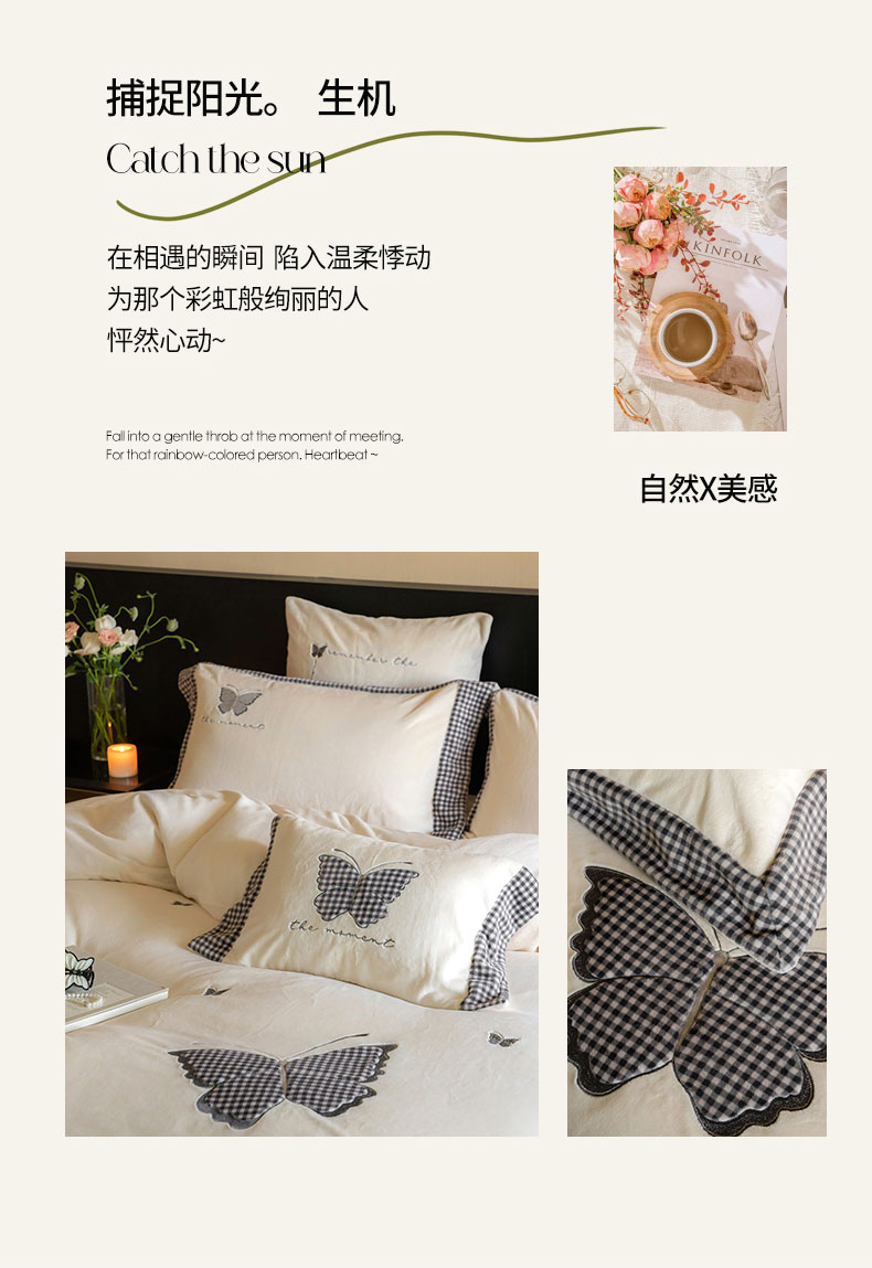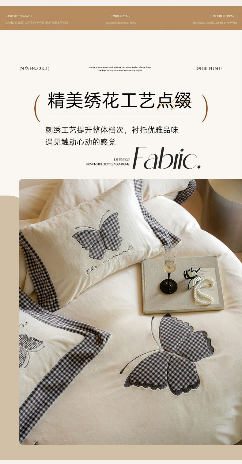 商品名称:(总)FORTWO家纺2024新款230G牛奶绒拼角款四件套-许愿蝶