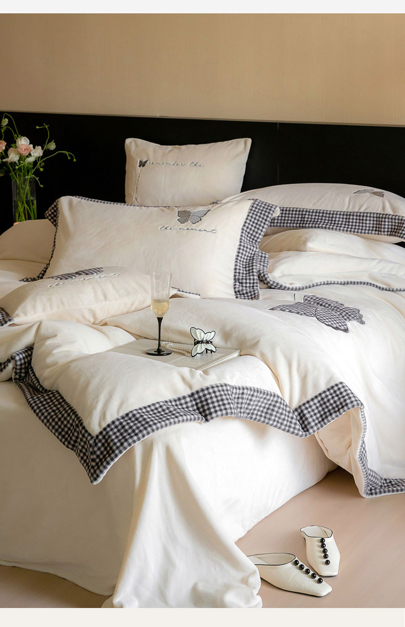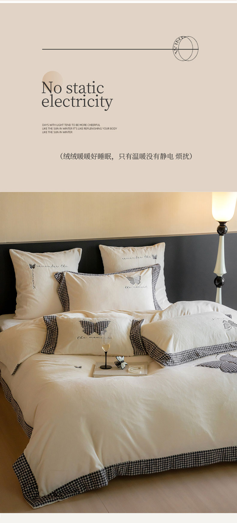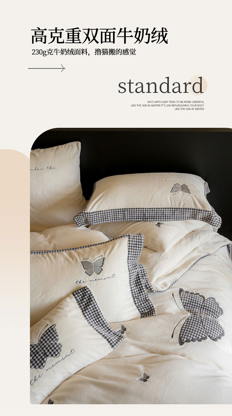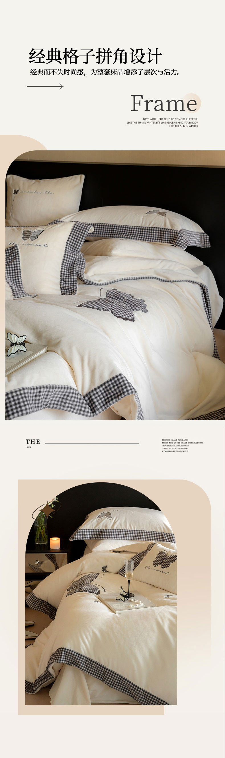 (总)FORTWO家纺2024新款230G牛奶绒拼角款四件套-许愿蝶