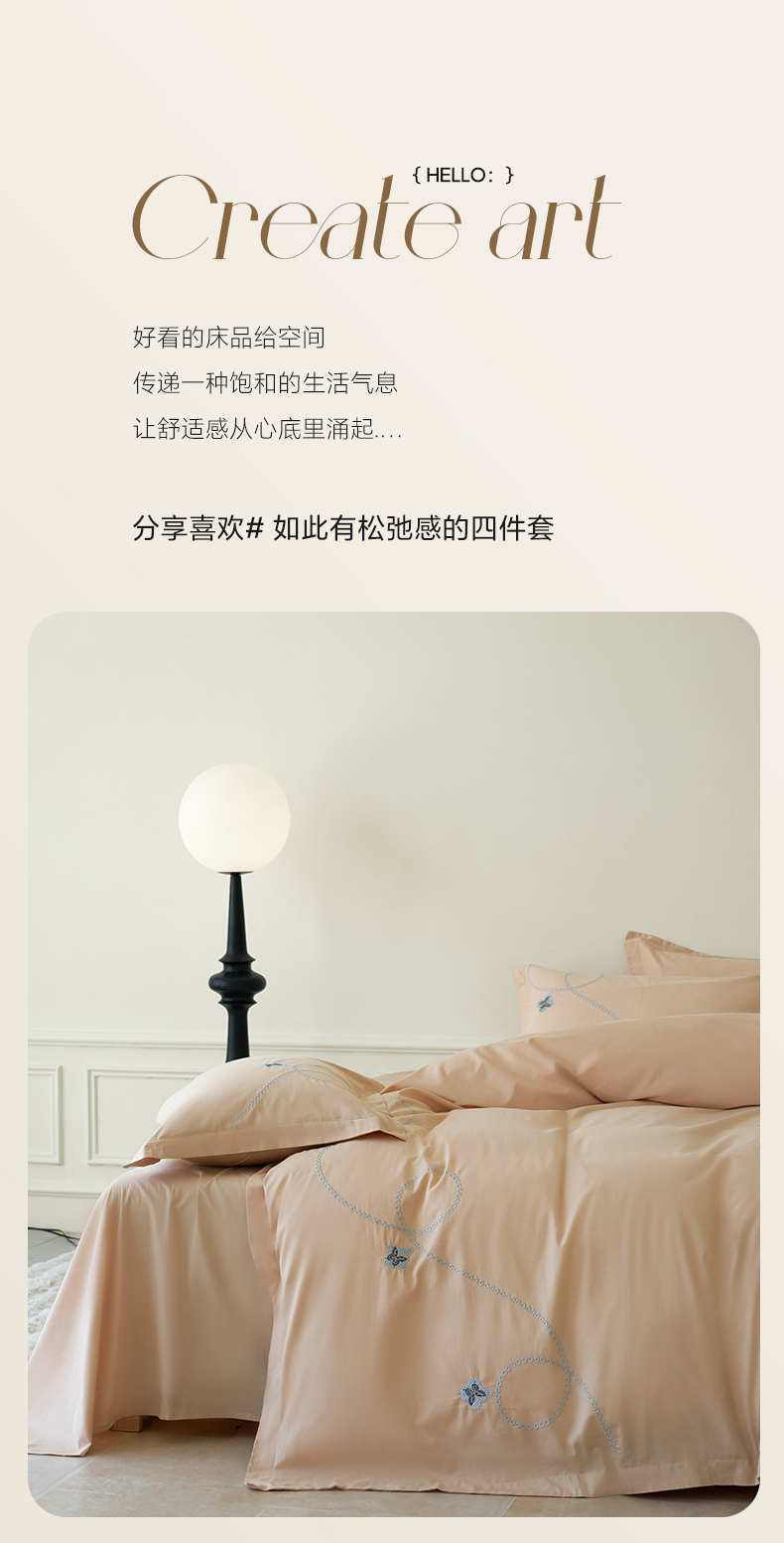 (总)米奈家居 2025新款《利昂》麻绳镶嵌100支新疆长绒棉纯棉四件套,冰川蓝,豆蔻紫,落霞粉,奶杏棕,山茶红,松雾灰