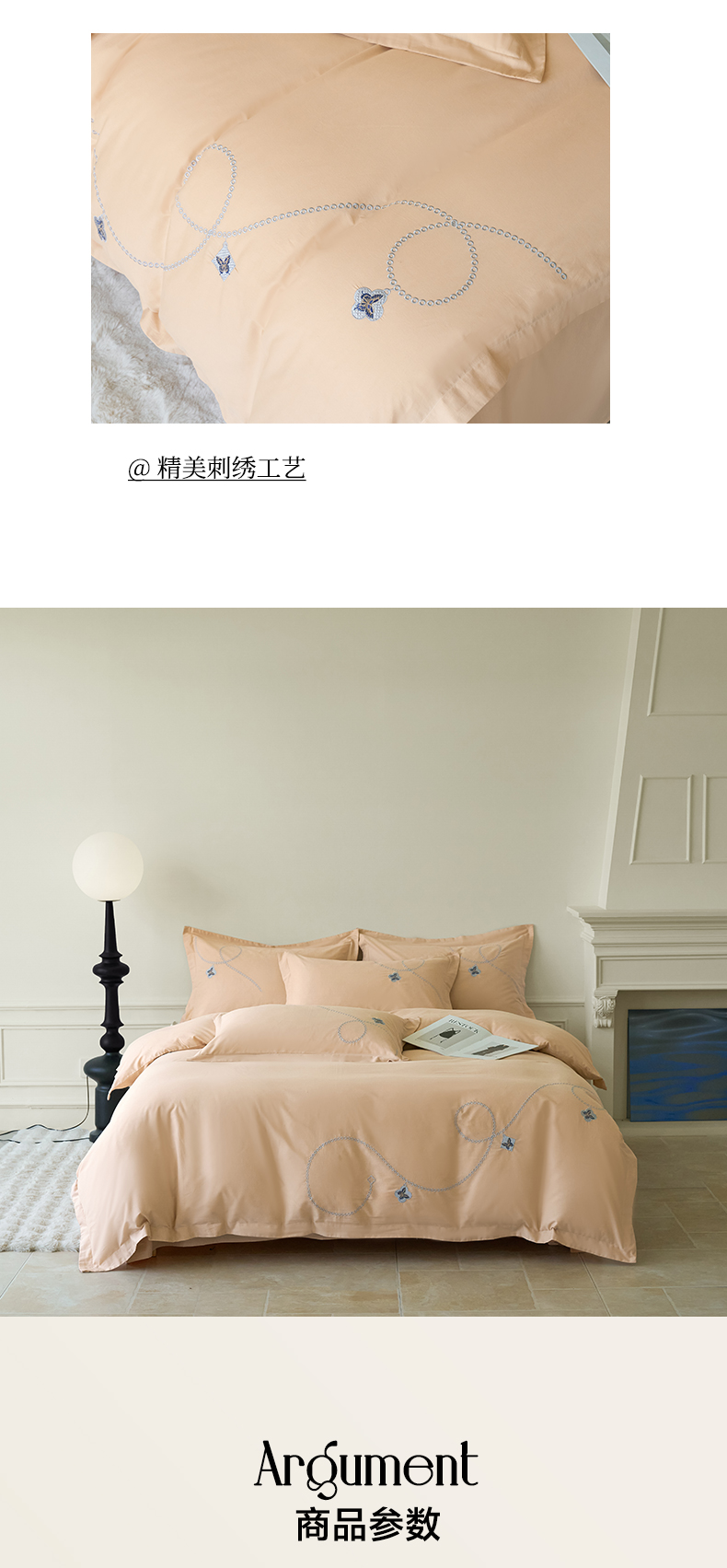 米奈家居 2024新款长绒棉纯棉刺绣四件套-罗琳-简约风 香槟