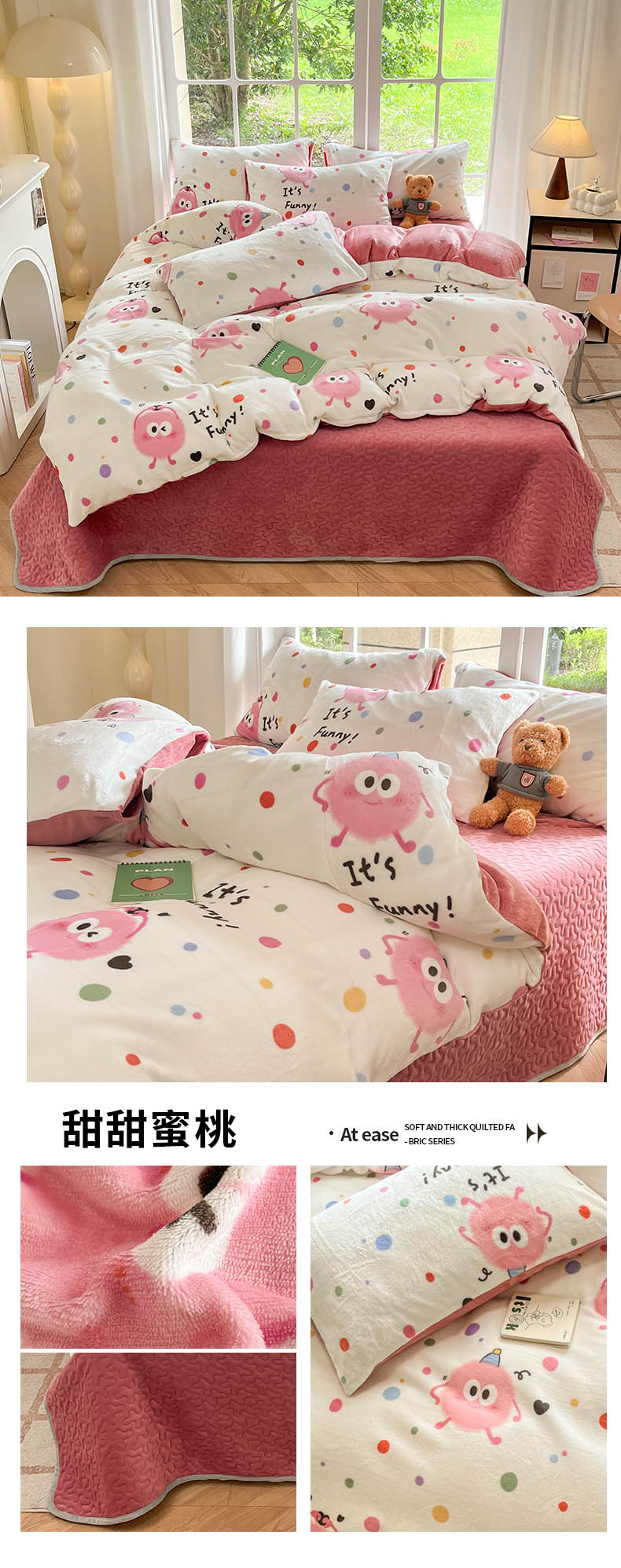 商品名称:新印象 2024新款韩式双面牛奶绒床盖四件套 甜甜蜜桃