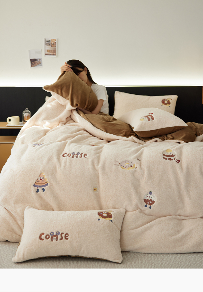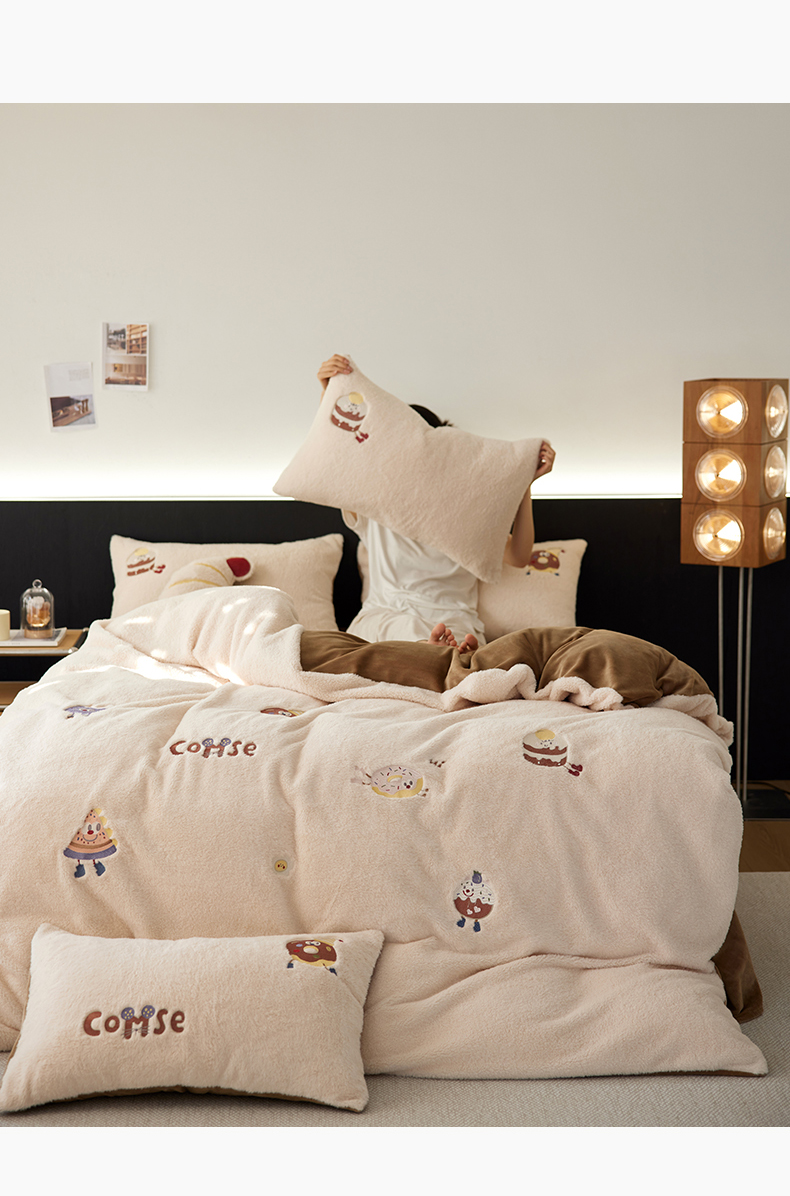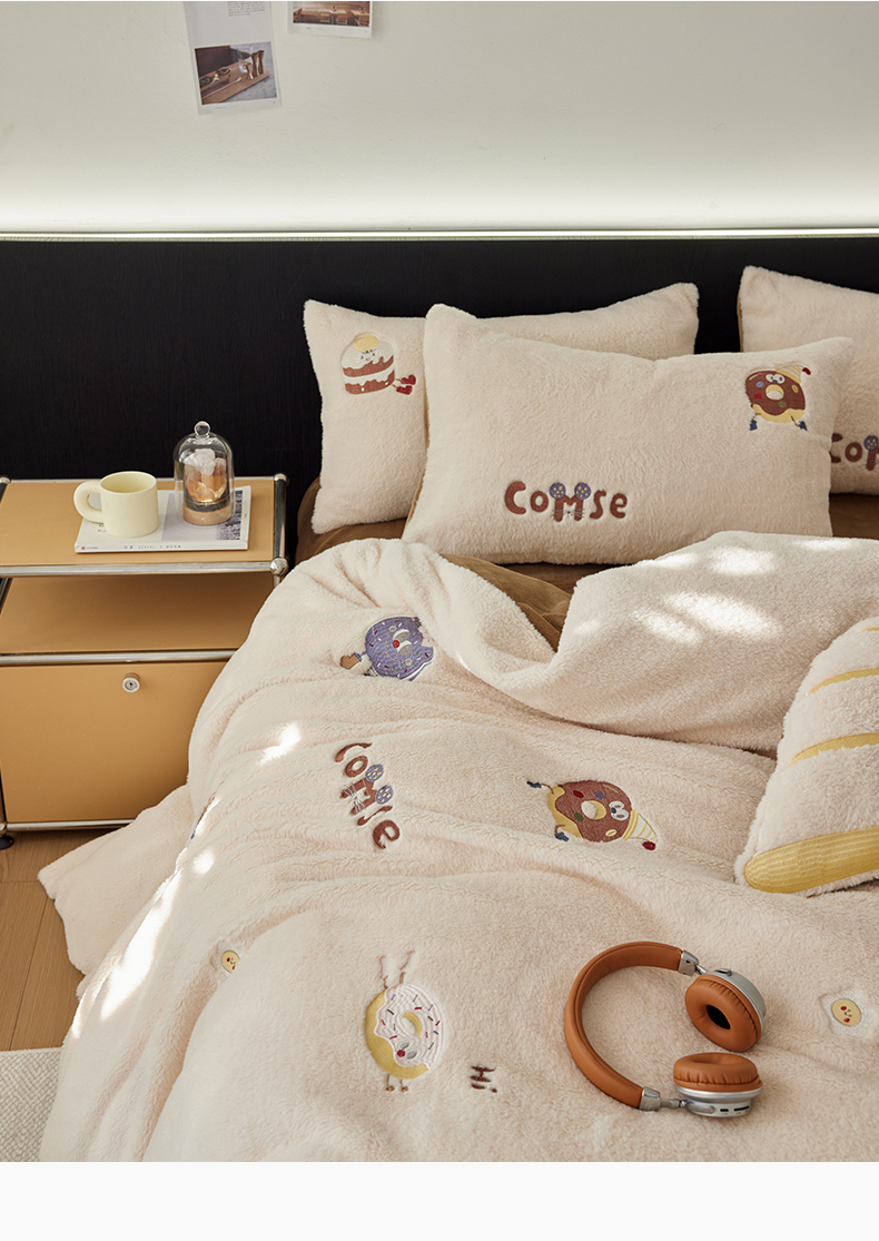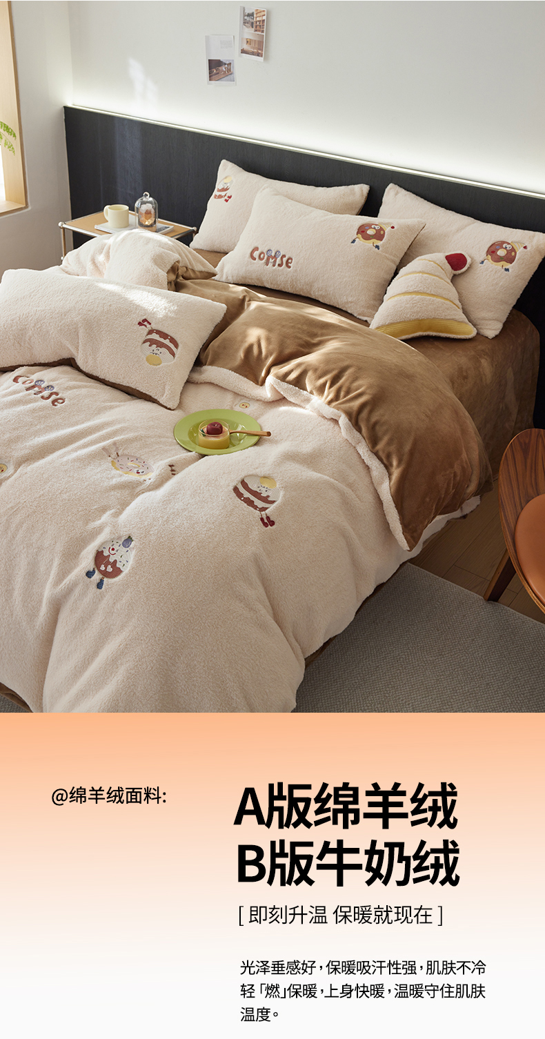 当前位置: 91家纺网 > 商品网购 > 床品套件 > 四件套 > 其它四件套 > 安莱生活 2024新款绵羊绒毛巾绣四件套 甜品派对