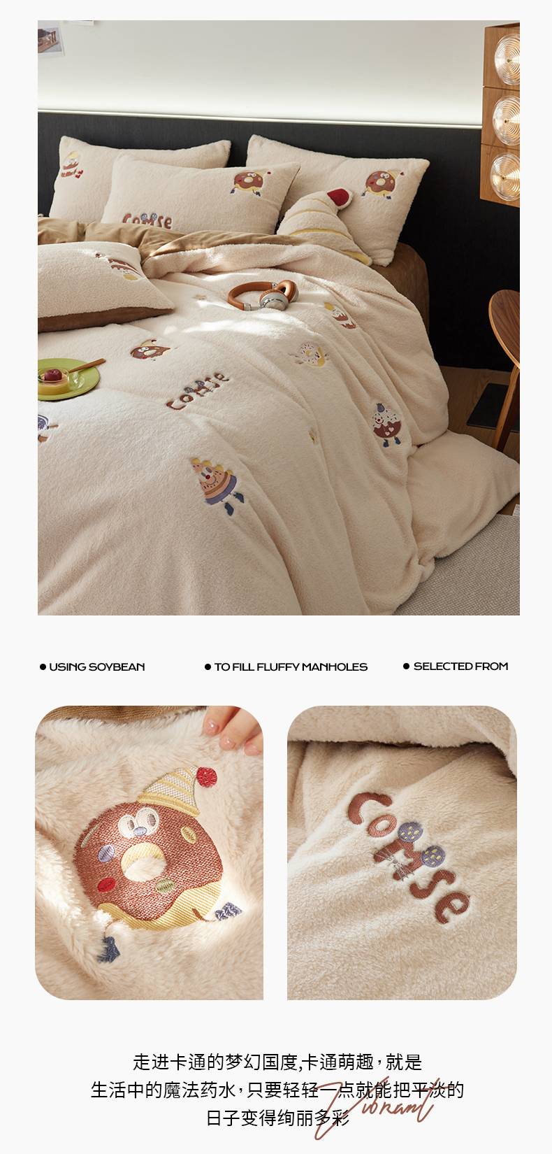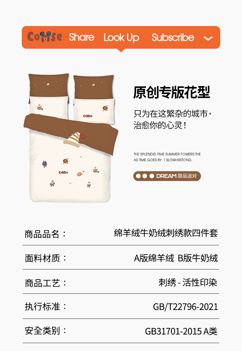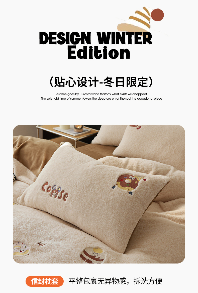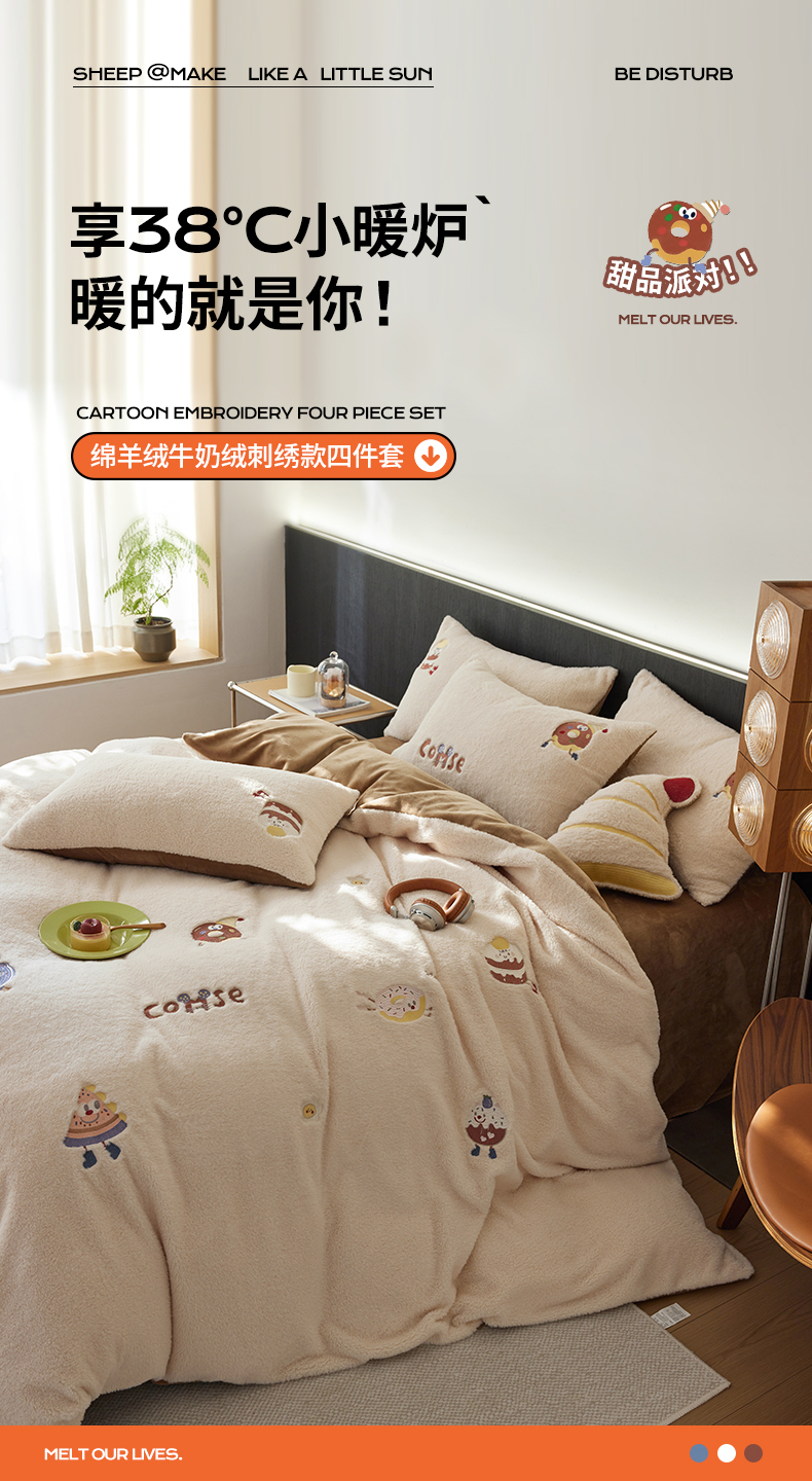 当前位置: 91家纺网 > 商品网购 > 床品套件 > 四件套 > 其它四件套 > 安莱生活 2024新款绵羊绒毛巾绣四件套 甜品派对