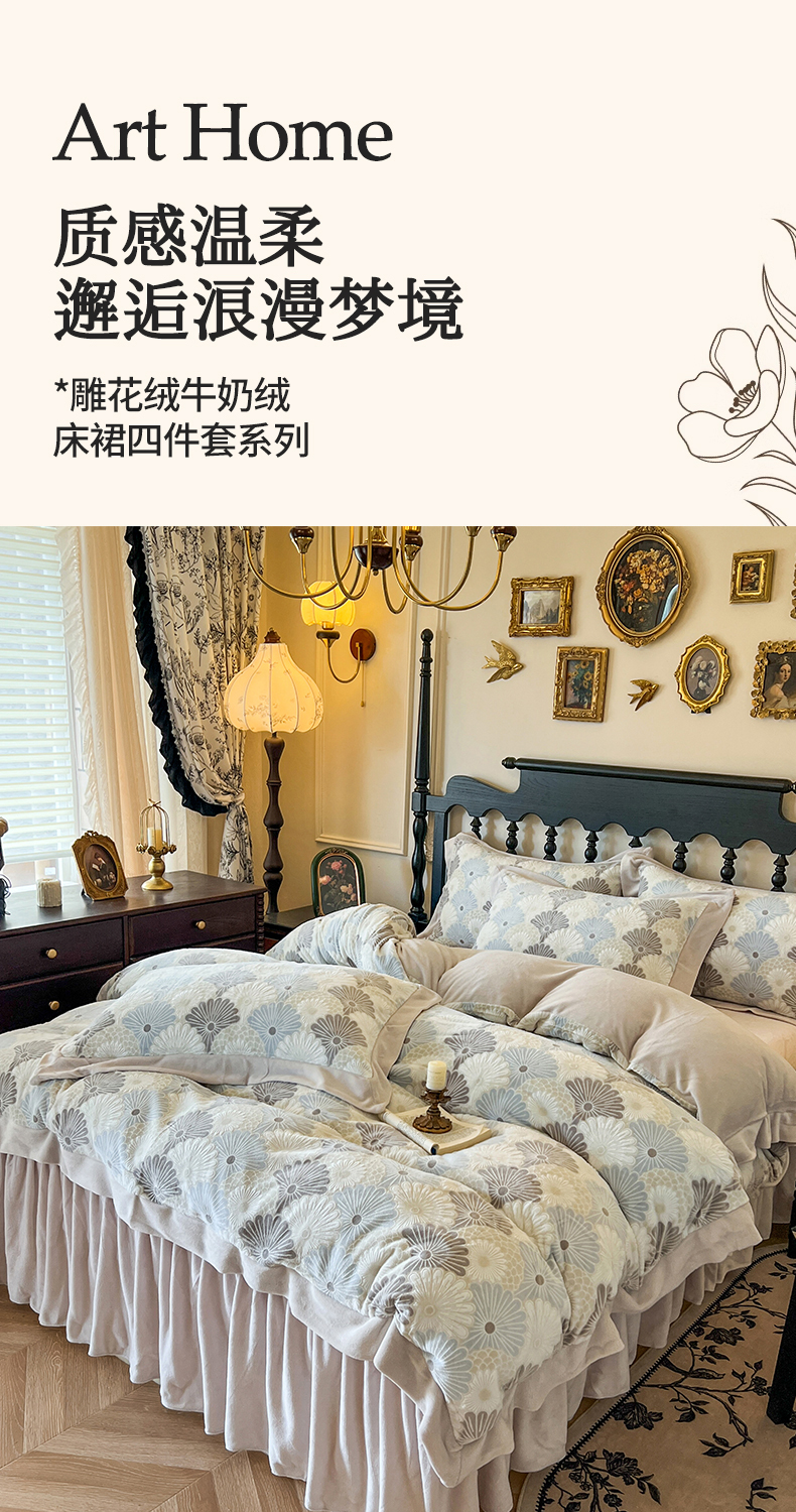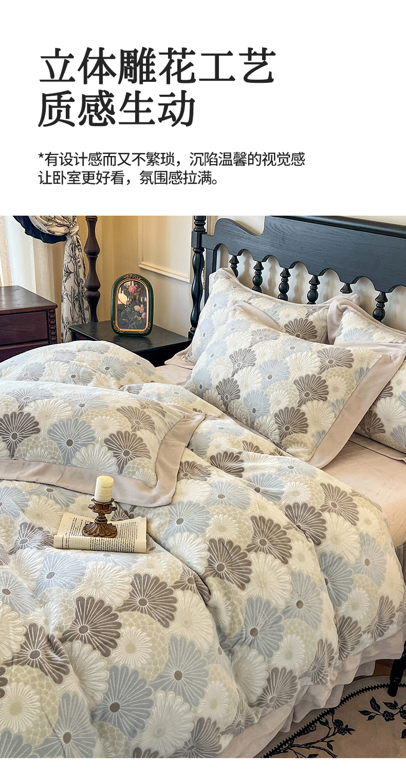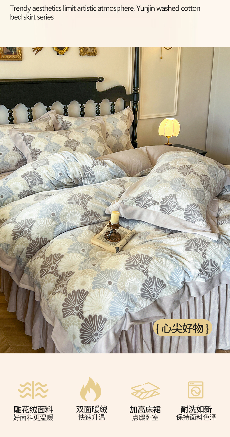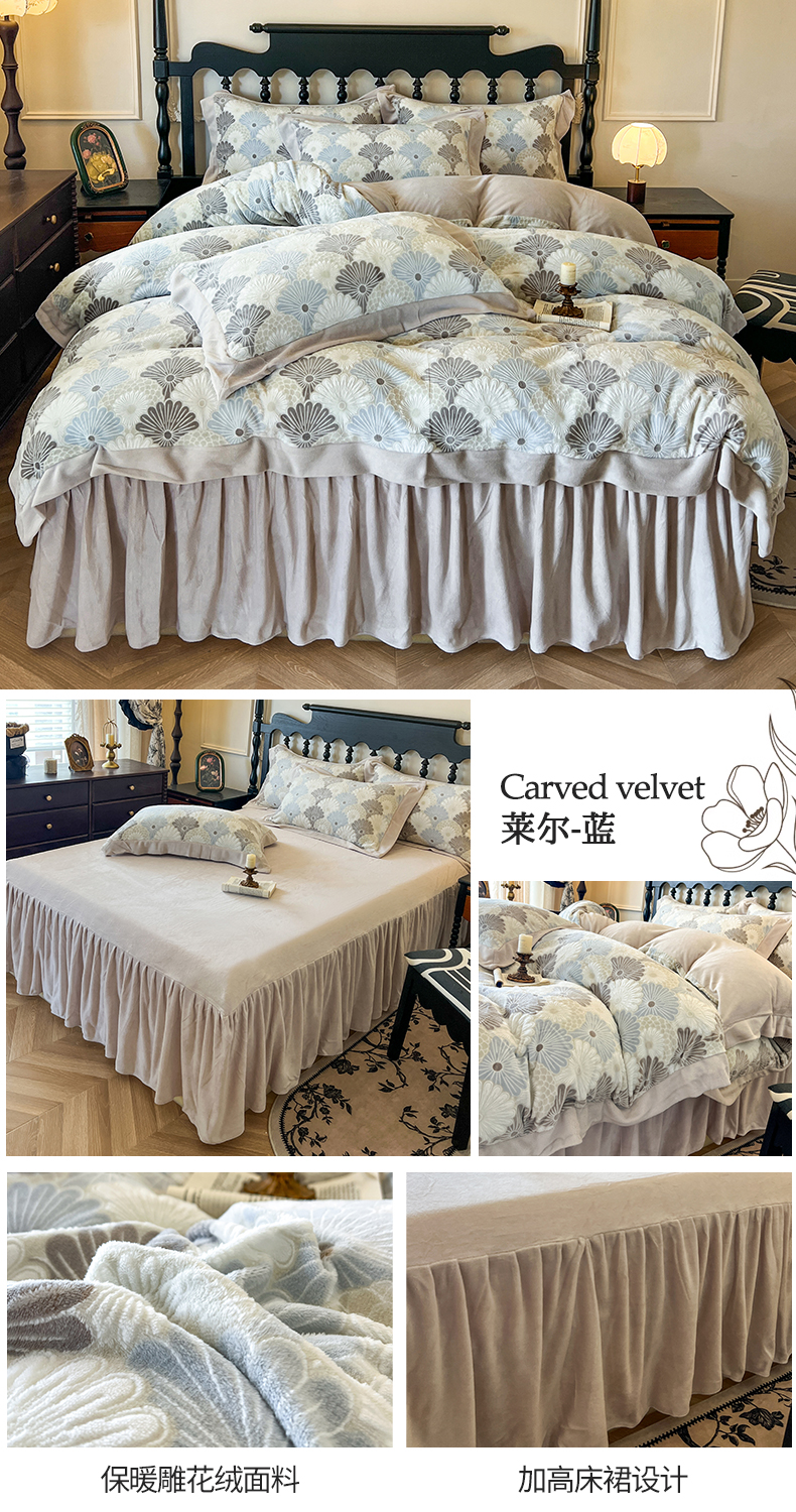 当前位置: 91家纺网 > 商品网购 > 床品套件 > 四件套 > 雕花绒四件套 > 网红馆(ck家纺) 224新款简约系类雕花绒床裙四件套 莱尔-蓝