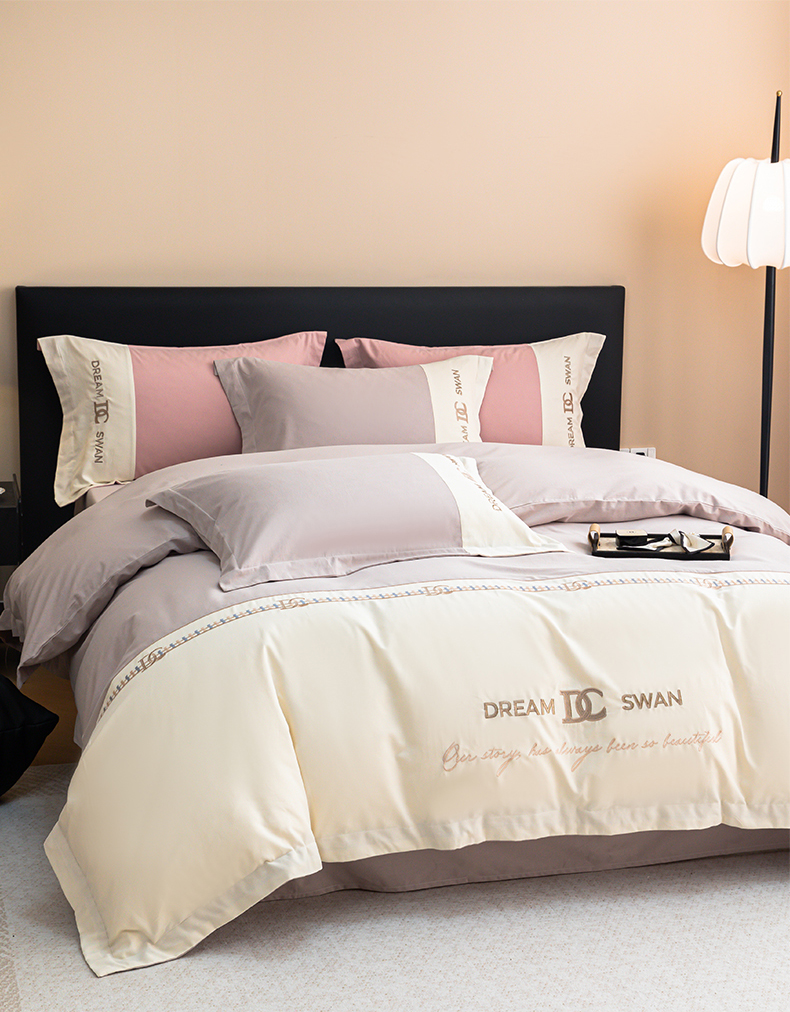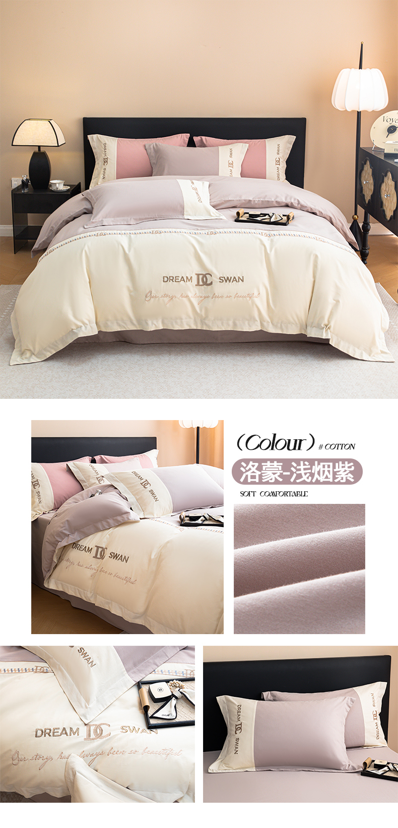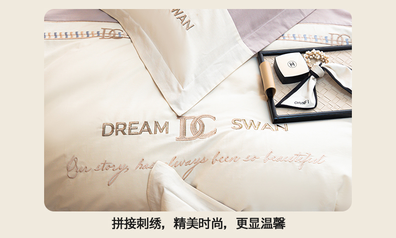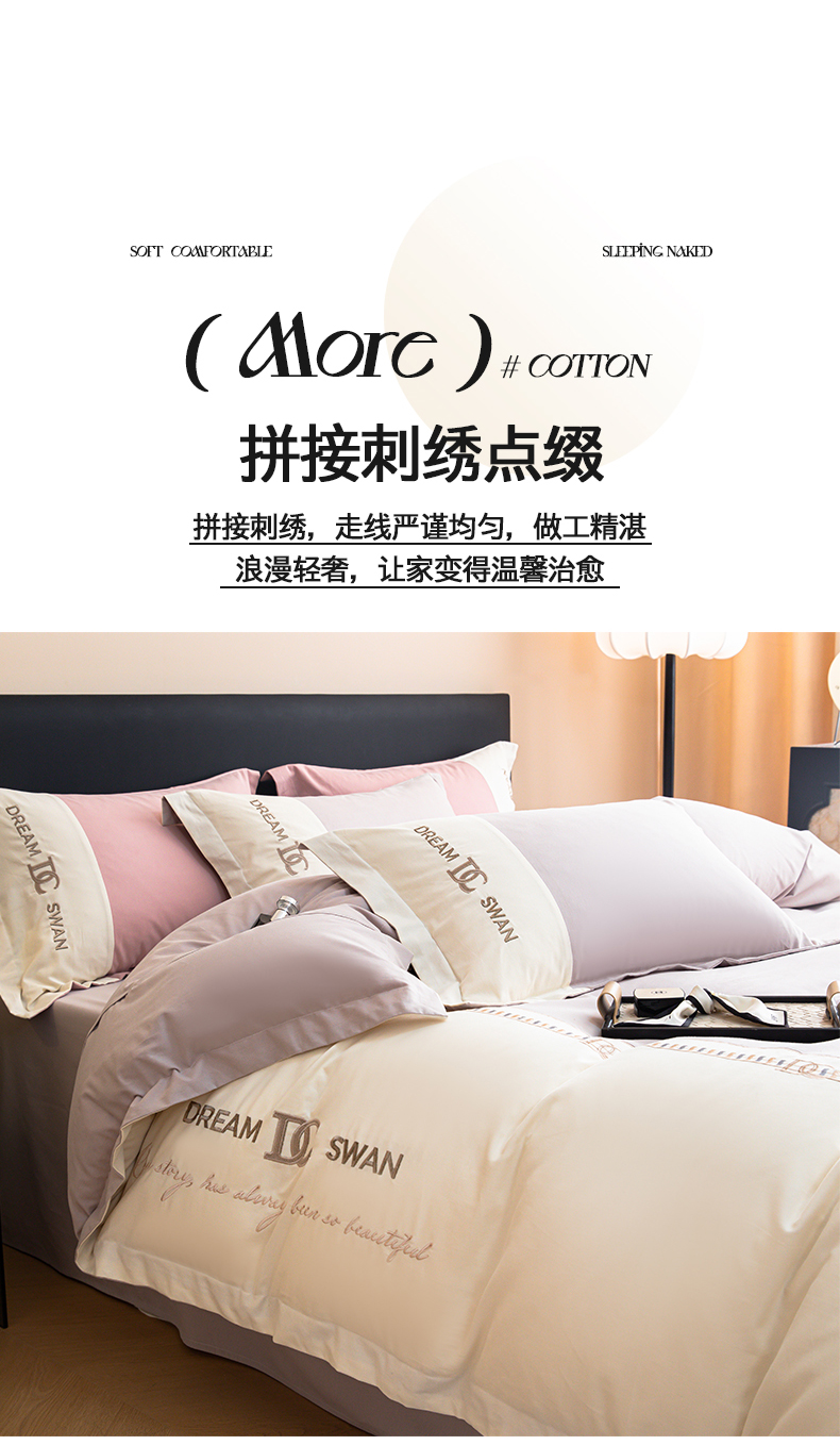 商品名称:典曼家纺 2024新款【洛蒙】磨毛拼接刺绣四件套 洛蒙-浅烟紫