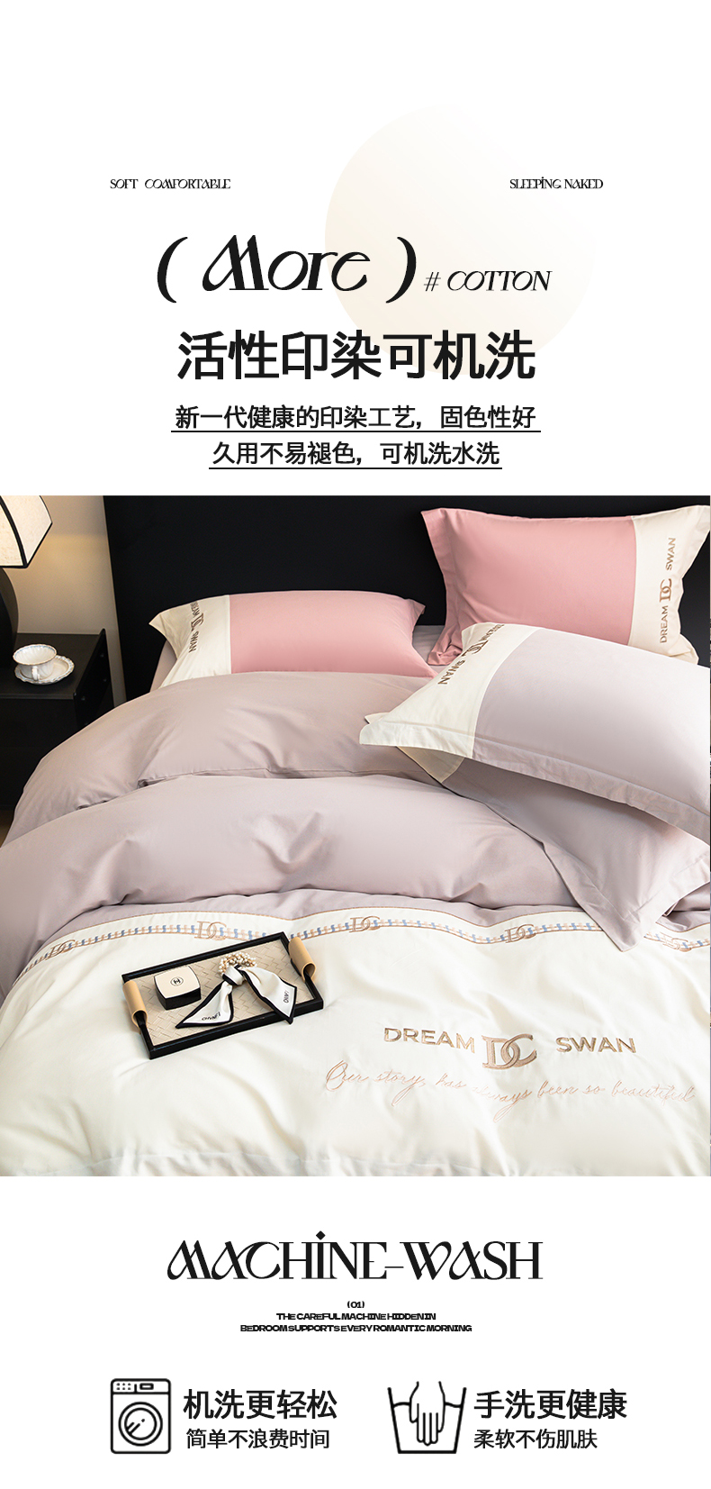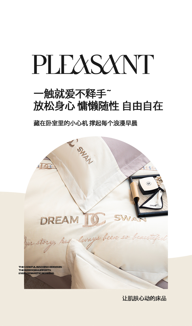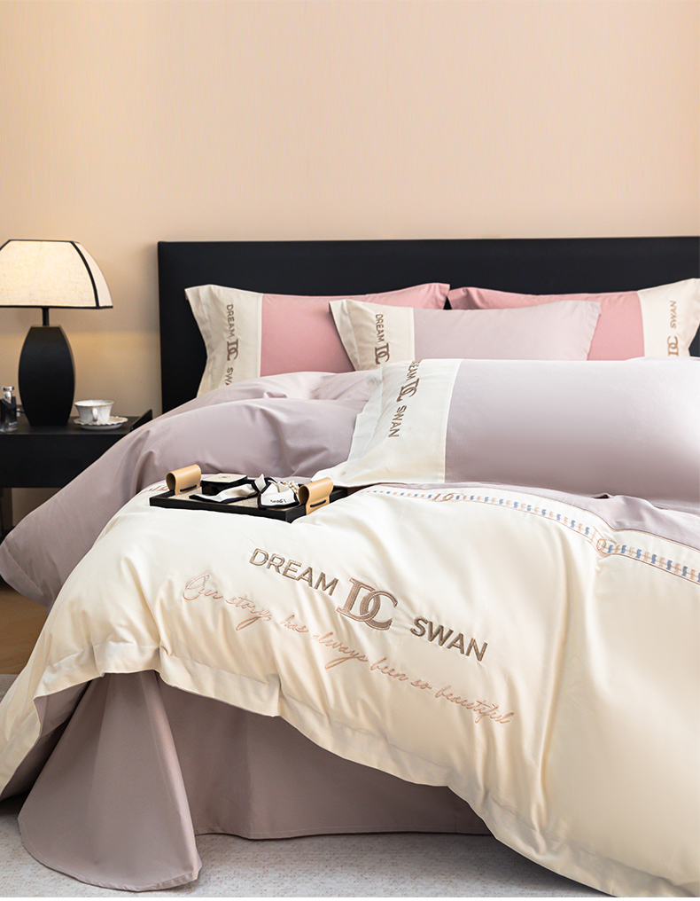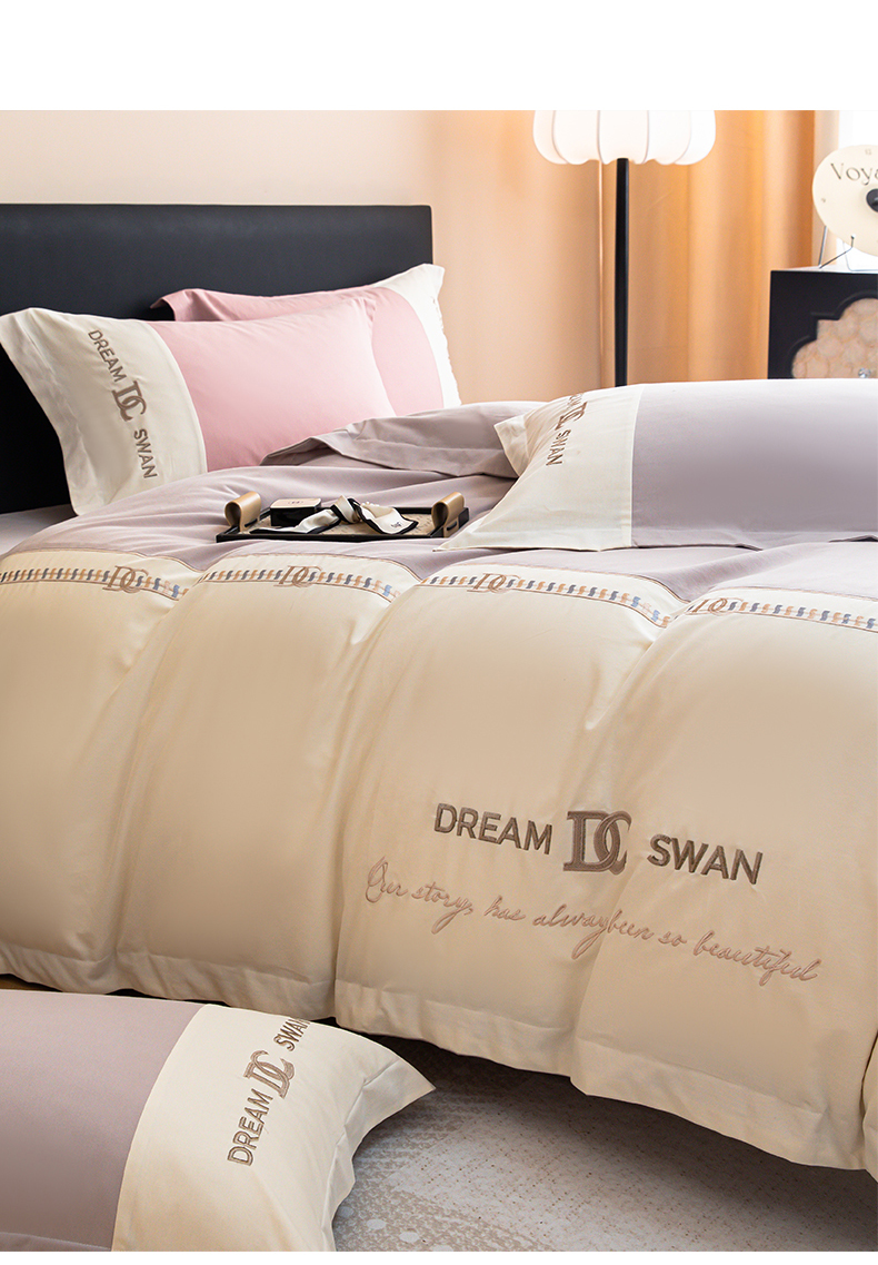 商品名称:典曼家纺 2024新款【洛蒙】磨毛拼接刺绣四件套 洛蒙-浅烟紫