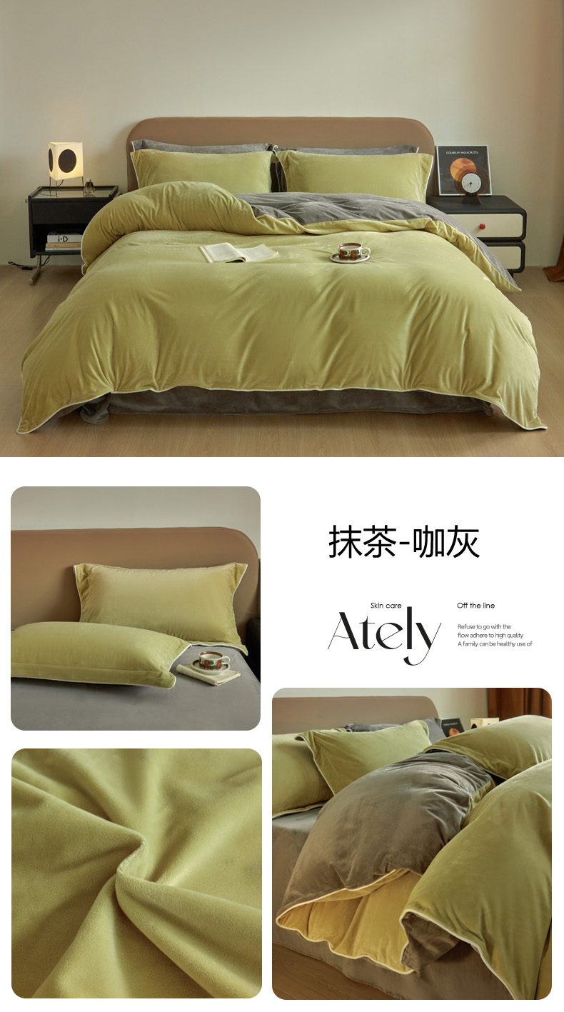 当前位置: 91家纺网 > 商品网购 > 床品套件 > 四件套 > 牛奶绒四件套 > 万盛家纺 2025新款德芙绒牛奶绒法莱绒水晶绒双拼四件套 抹茶-咖灰