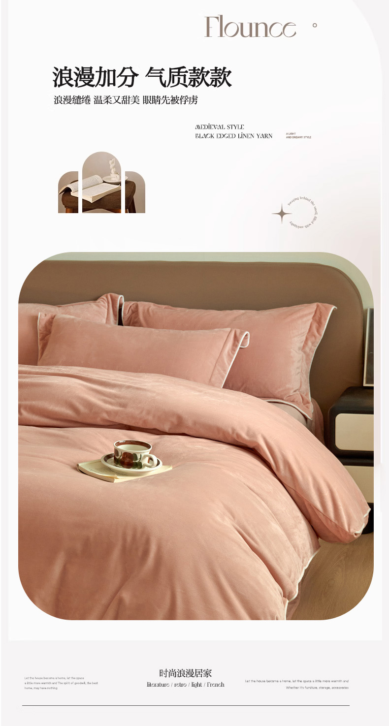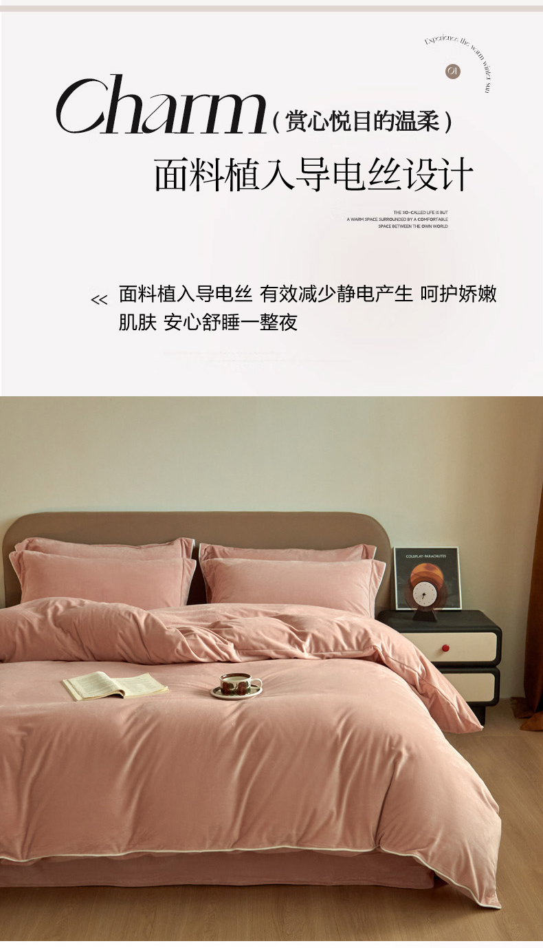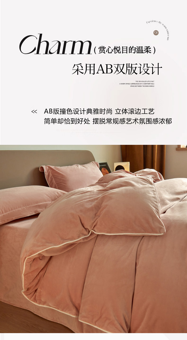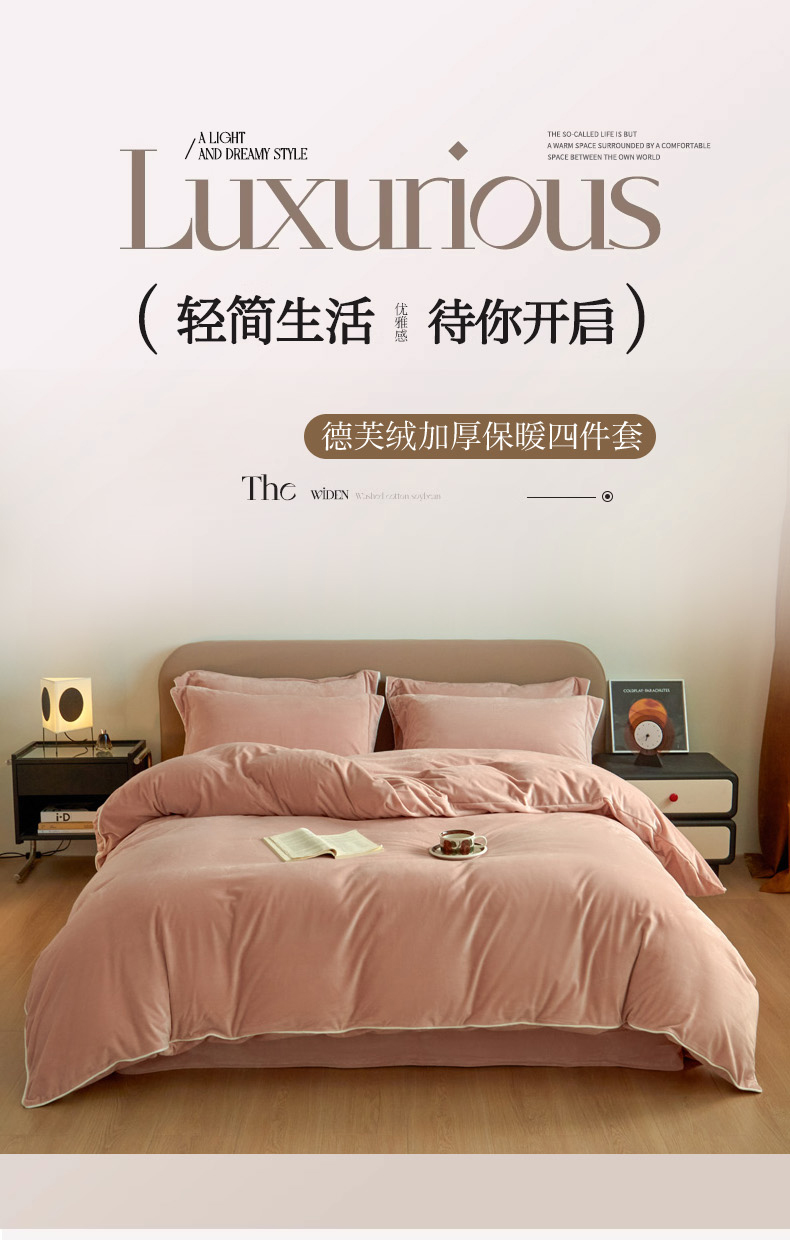 当前位置: 91家纺网 > 商品网购 > 床品套件 > 四件套 > 牛奶绒四件套 > 万盛家纺 2025新款德芙绒牛奶绒法莱绒水晶绒双拼四件套 脏粉