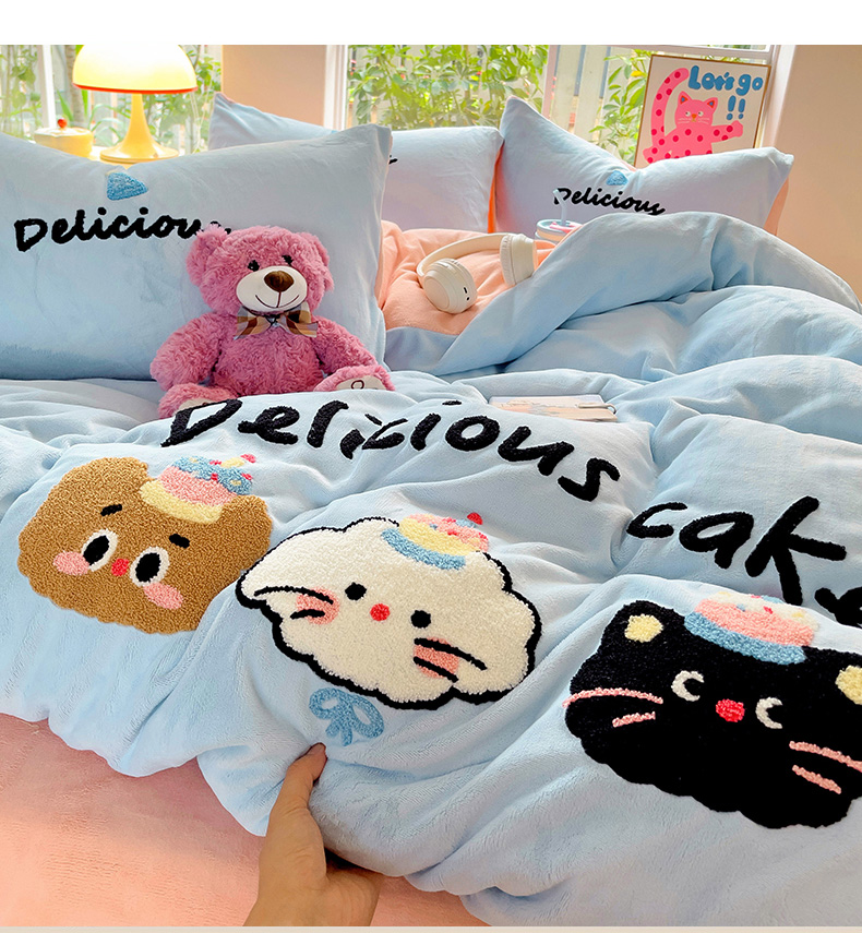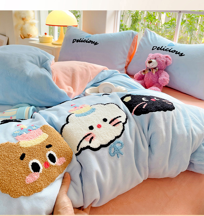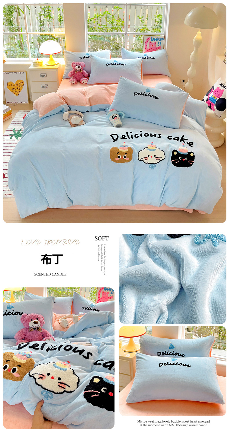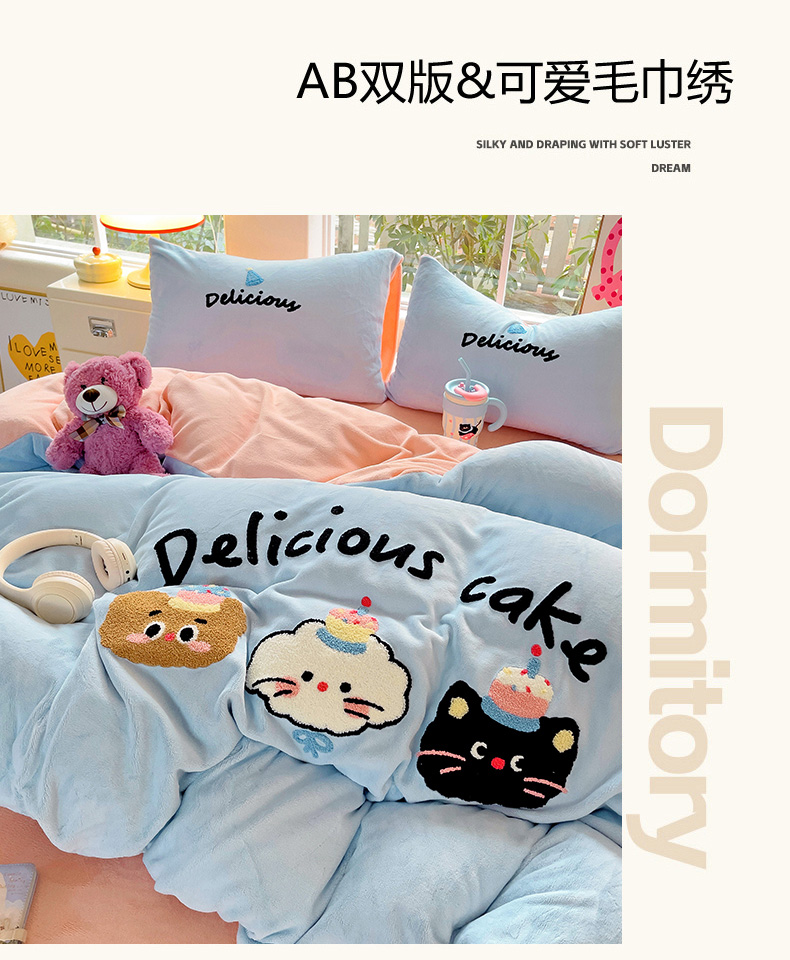当前位置: 91家纺网 > 商品网购 > 床品套件 > 四件套 > 牛奶绒四件套 > 眠帛家居 2024新款高克重牛奶绒毛巾绣加印大版卡通四件套系列二 布丁