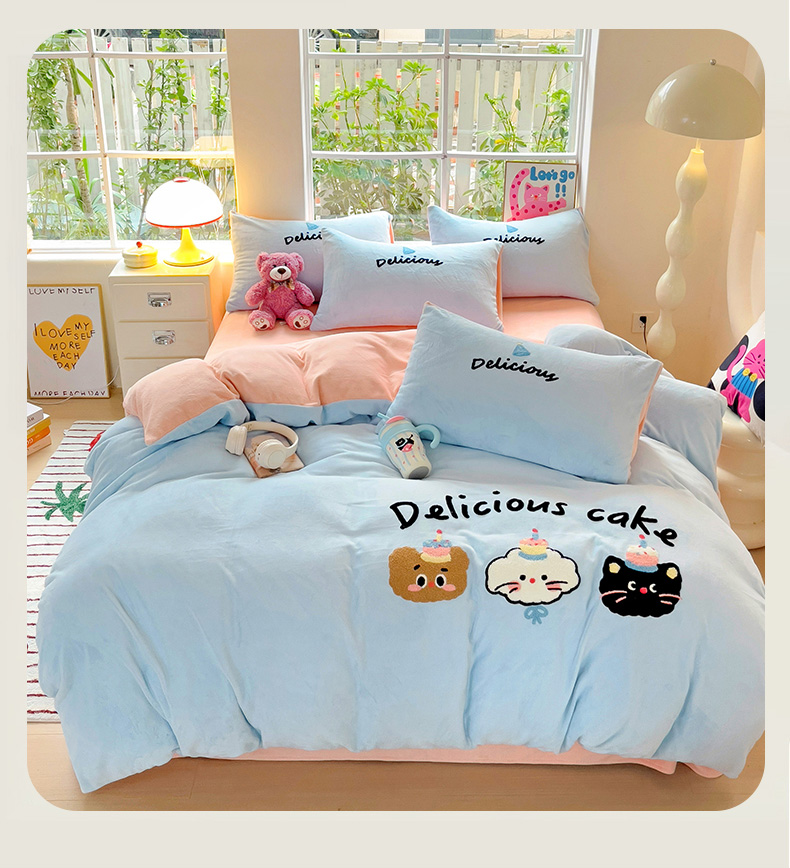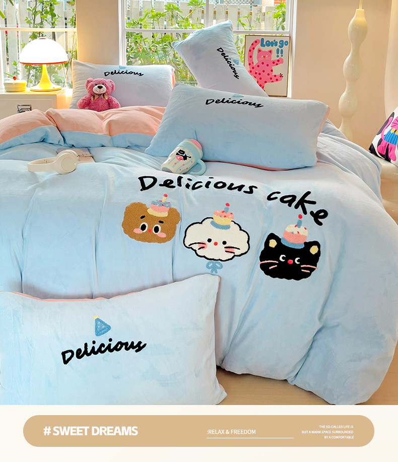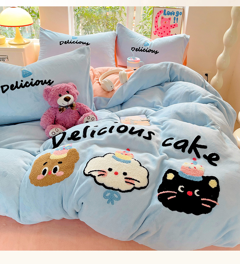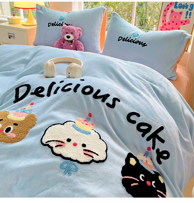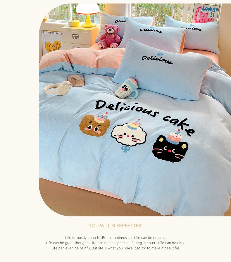 当前位置: 91家纺网 > 商品网购 > 床品套件 > 四件套 > 牛奶绒四件套 > 眠帛家居 2024新款高克重牛奶绒毛巾绣加印大版卡通四件套系列二 布丁