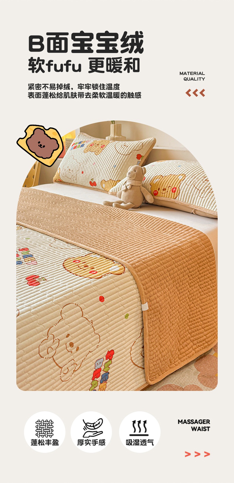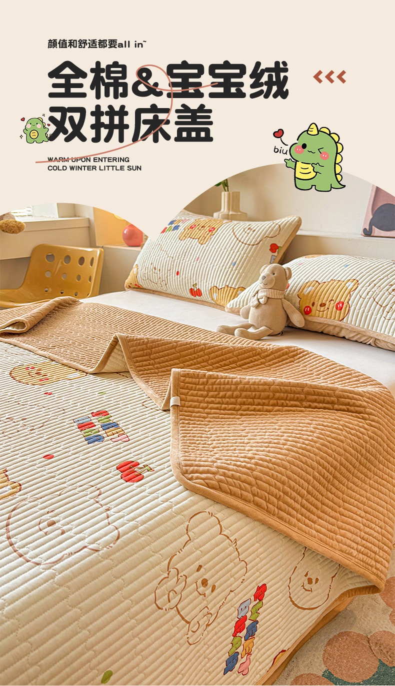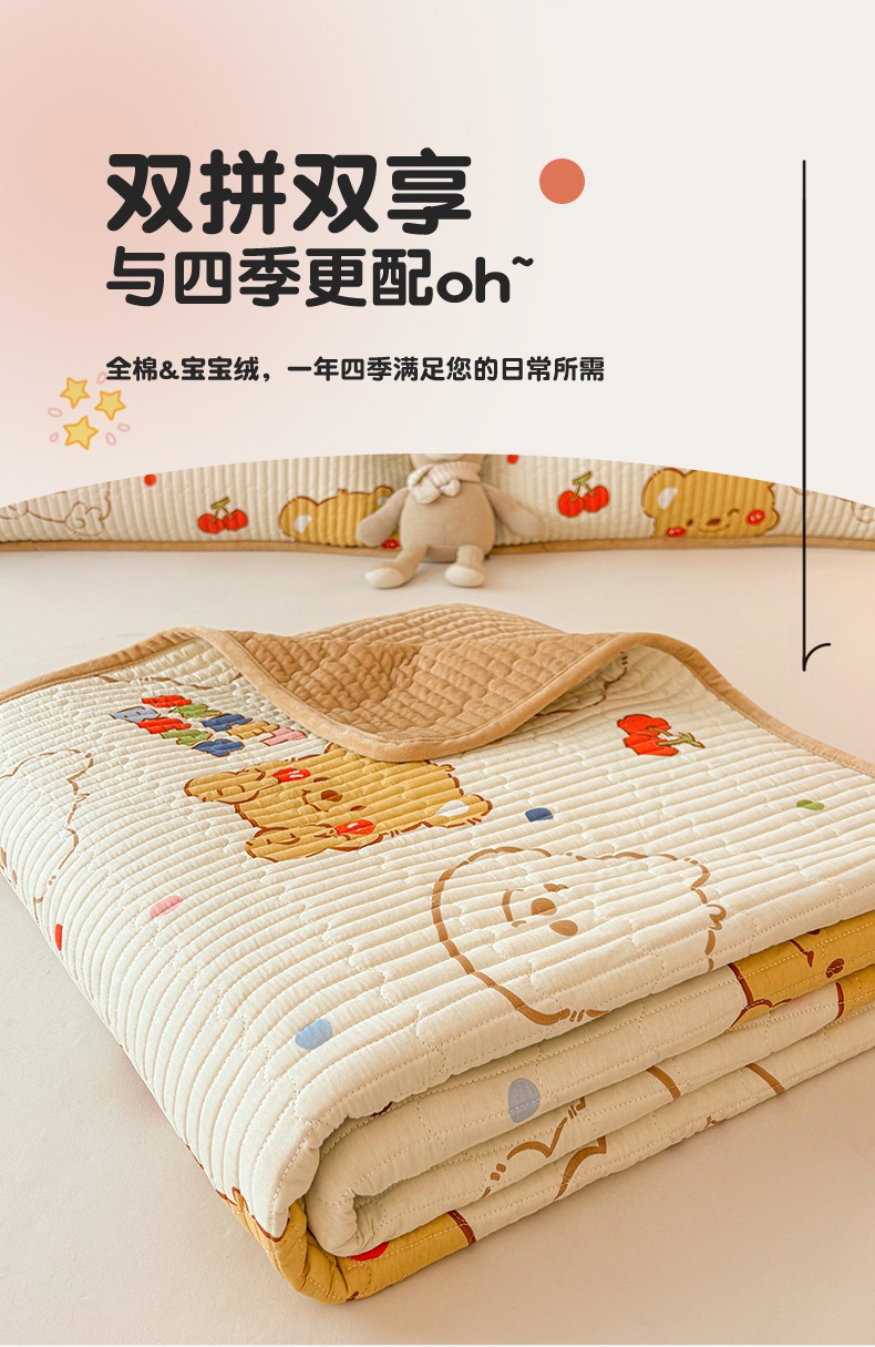 2024新款全棉卡通印花宝宝绒双拼床盖床垫童趣