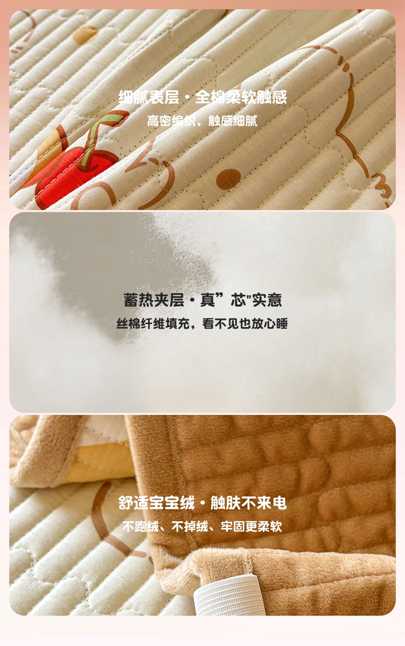 • 91家纺网 家纺一手货源 找家纺 2024新款全棉卡通印花宝宝绒双拼床盖床垫童趣