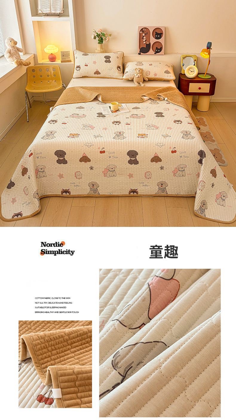 当前位置: 91家纺网 > 商品网购 > 床上用品 > 床盖 > 2024新款全棉卡通印花宝宝绒双拼床盖床垫童趣