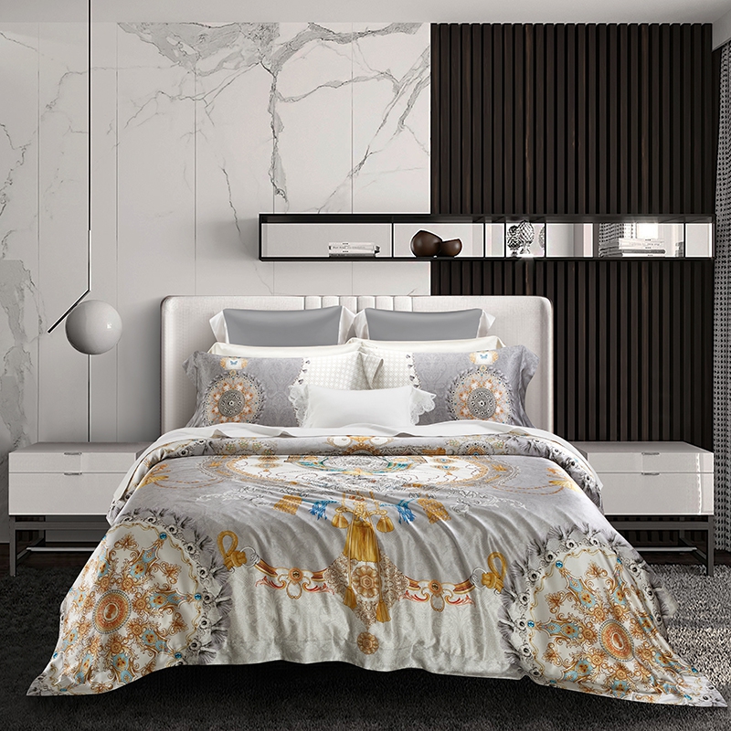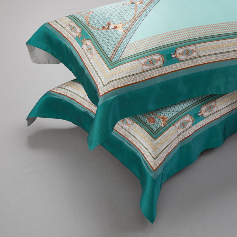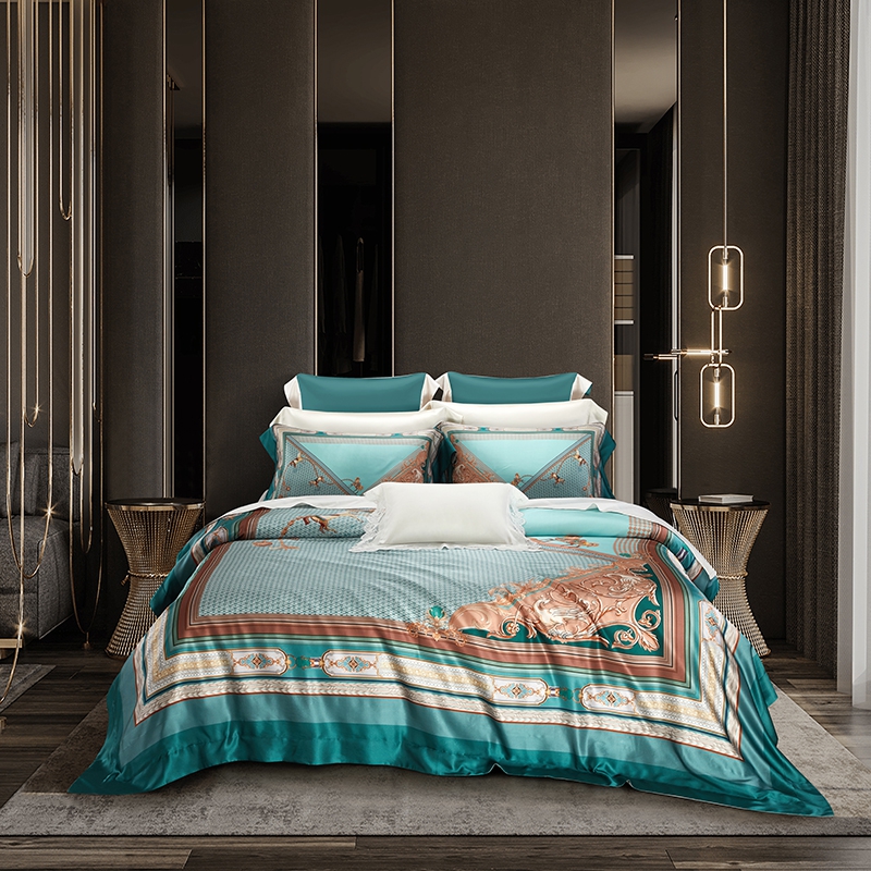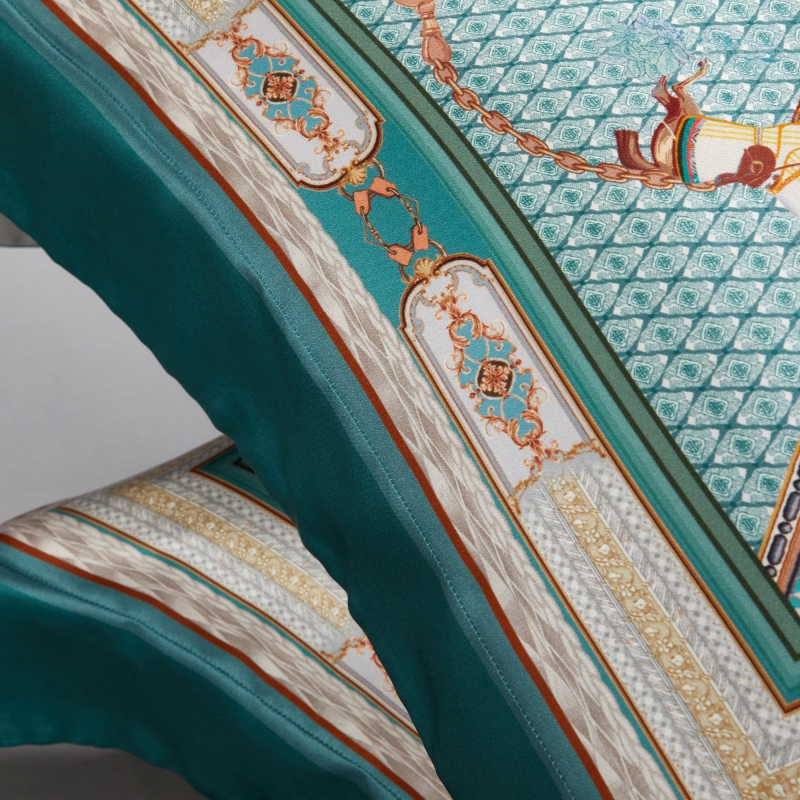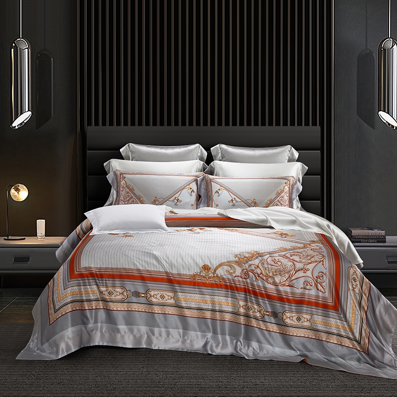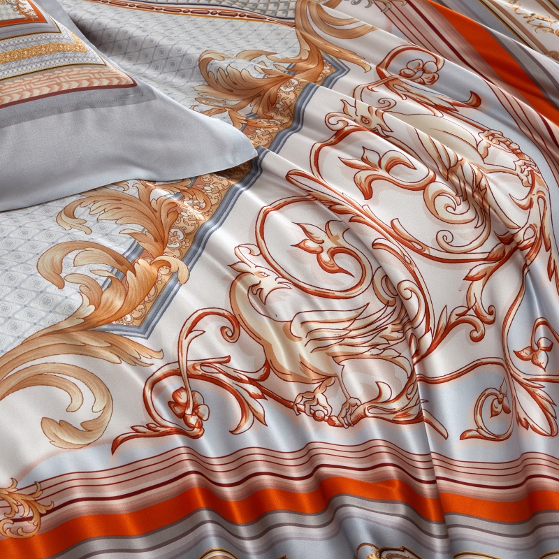 (总)赫本真丝馆(珍丝纺) 2025新款真丝天丝交织双丝四件套,德尔萨,欧瑞纳-橙,欧瑞纳-绿