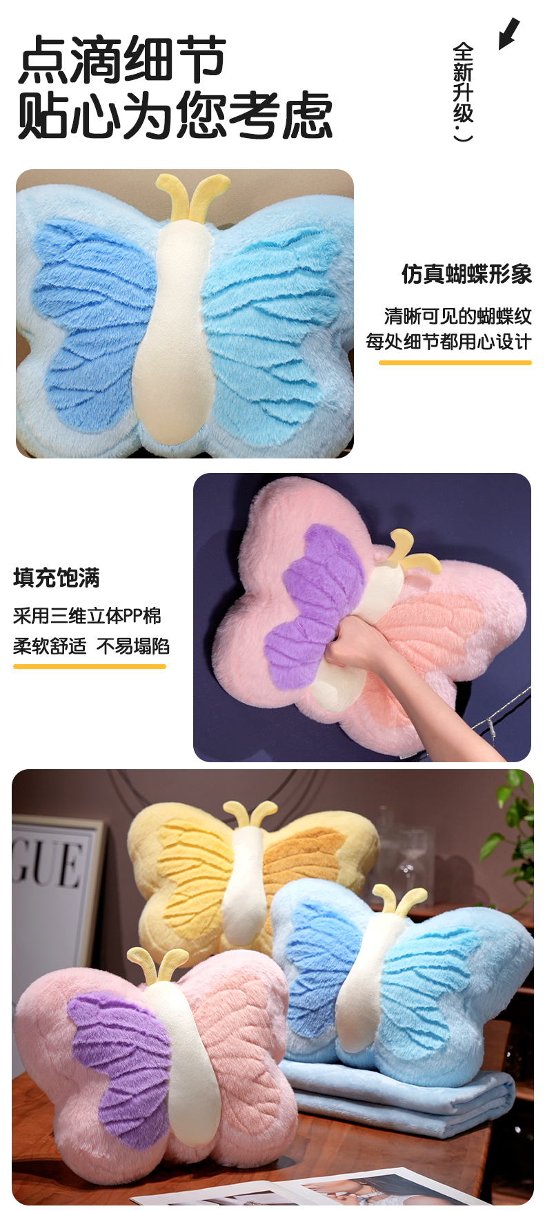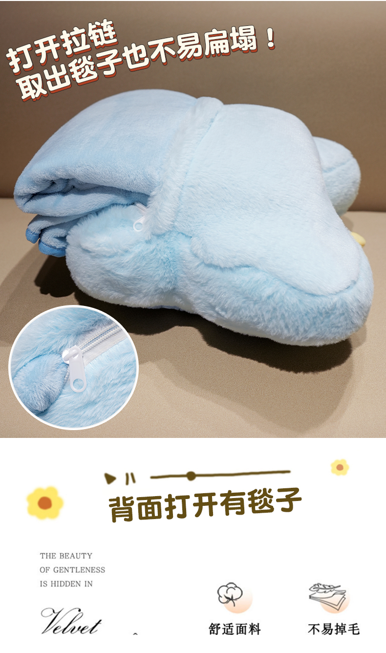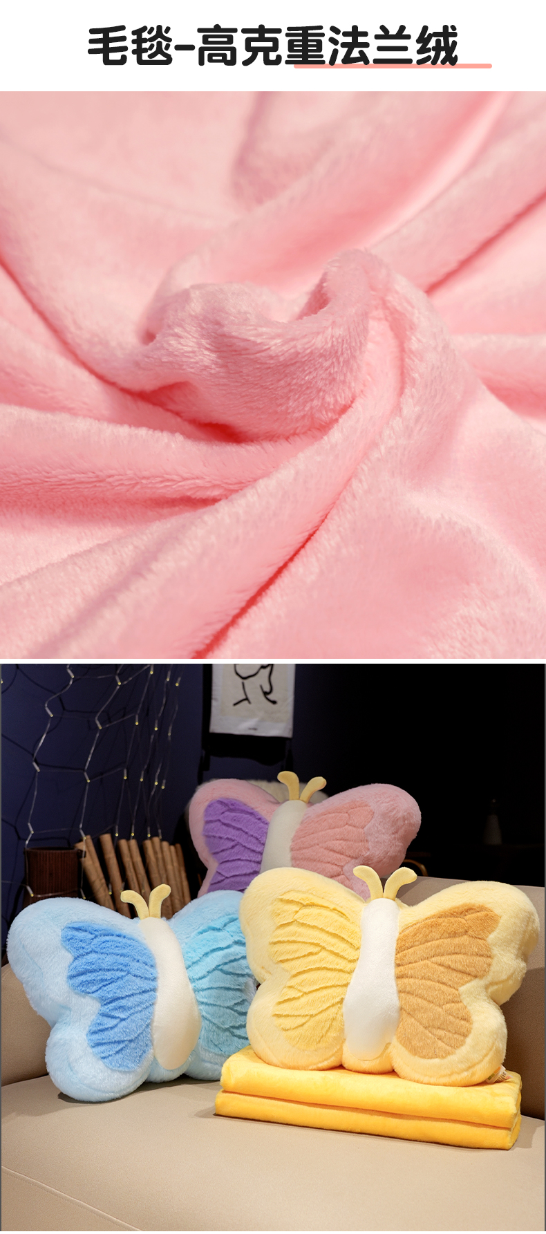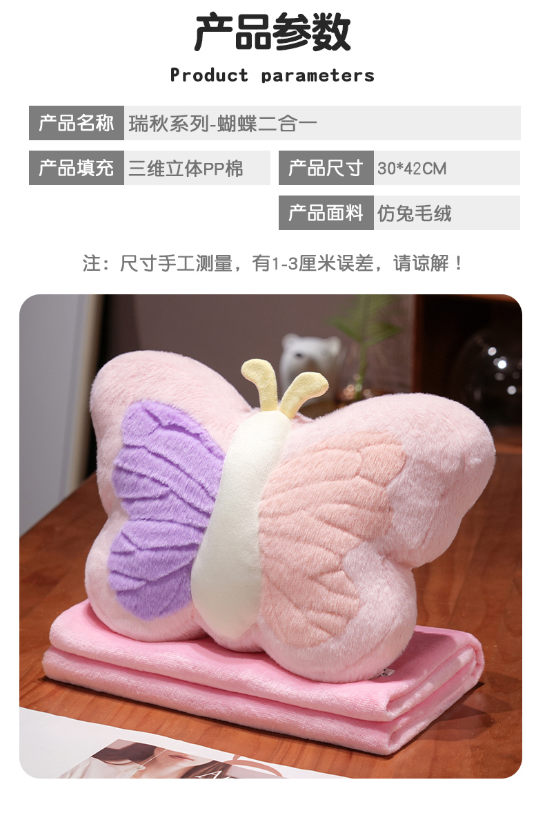 商品名称:仟亿莱 2024新款蝴蝶系列二合一抱枕毯 紫粉双拼蝴蝶