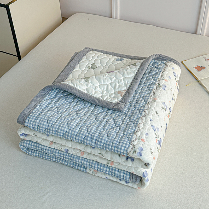 2025新款高克重牛奶绒印花单床盖 慕斯-蓝