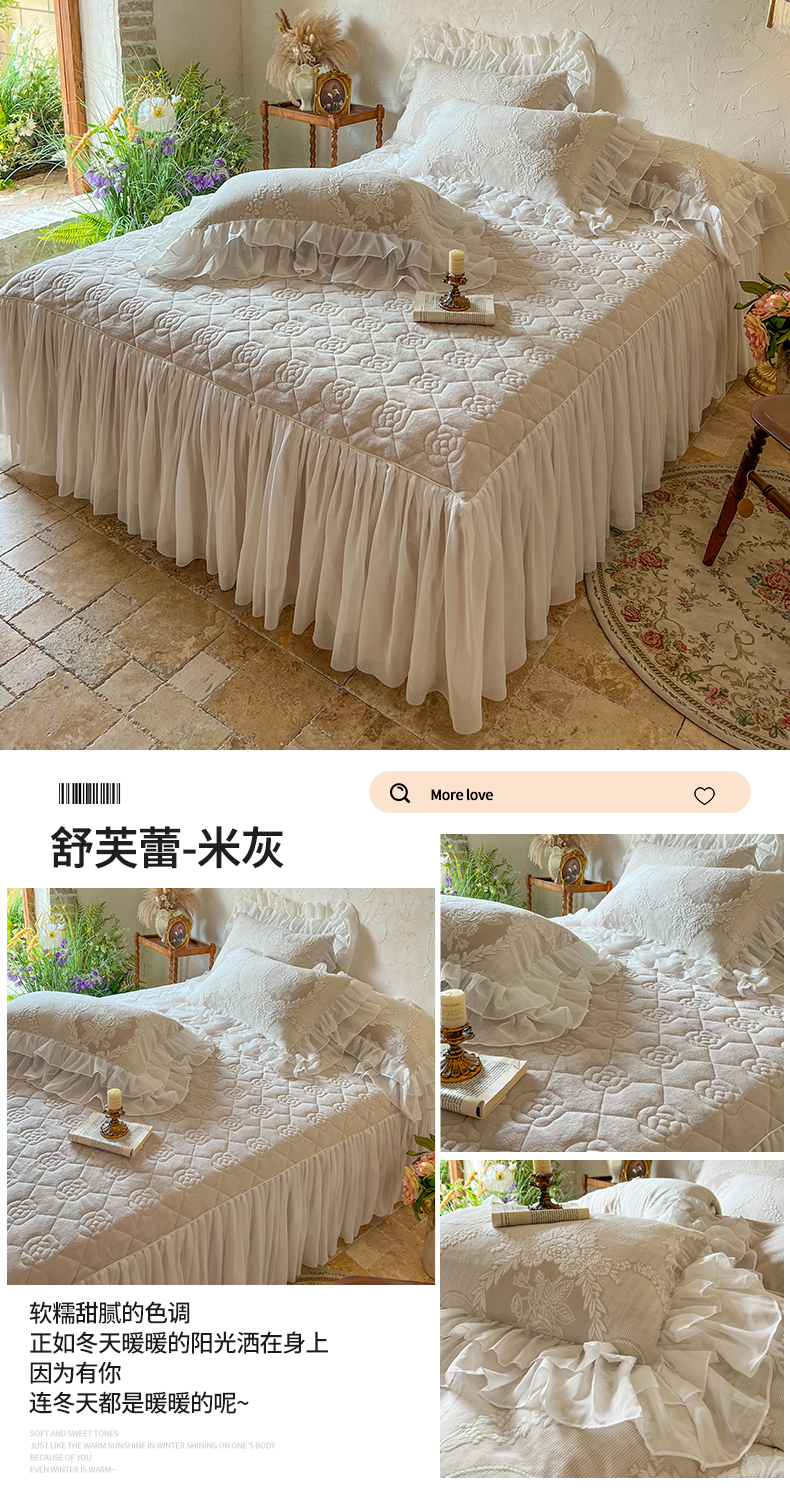 网红馆(ck家纺) 2025新款雕花绒床裙四件套单床裙--舒芙蕾 舒芙蕾-米灰
