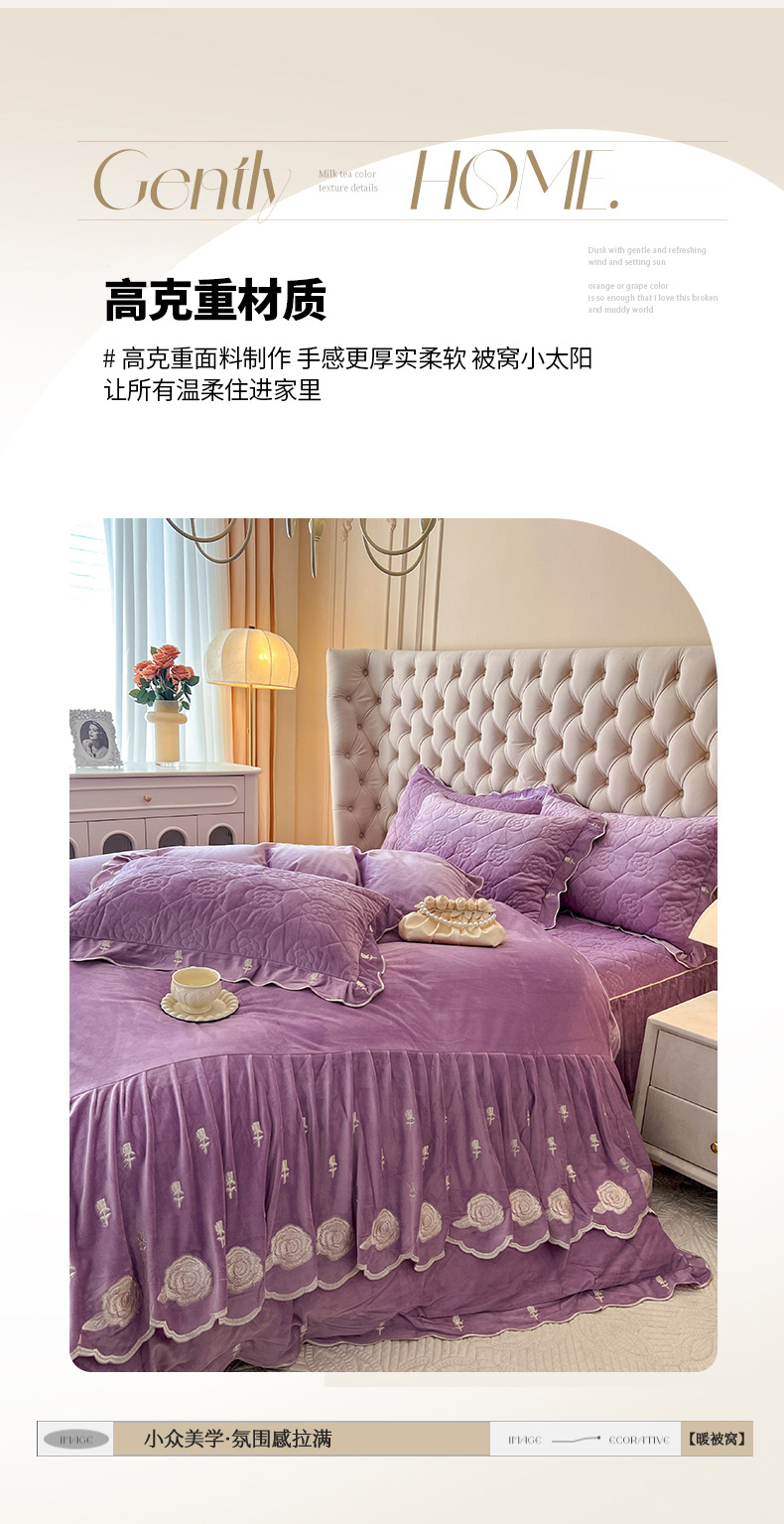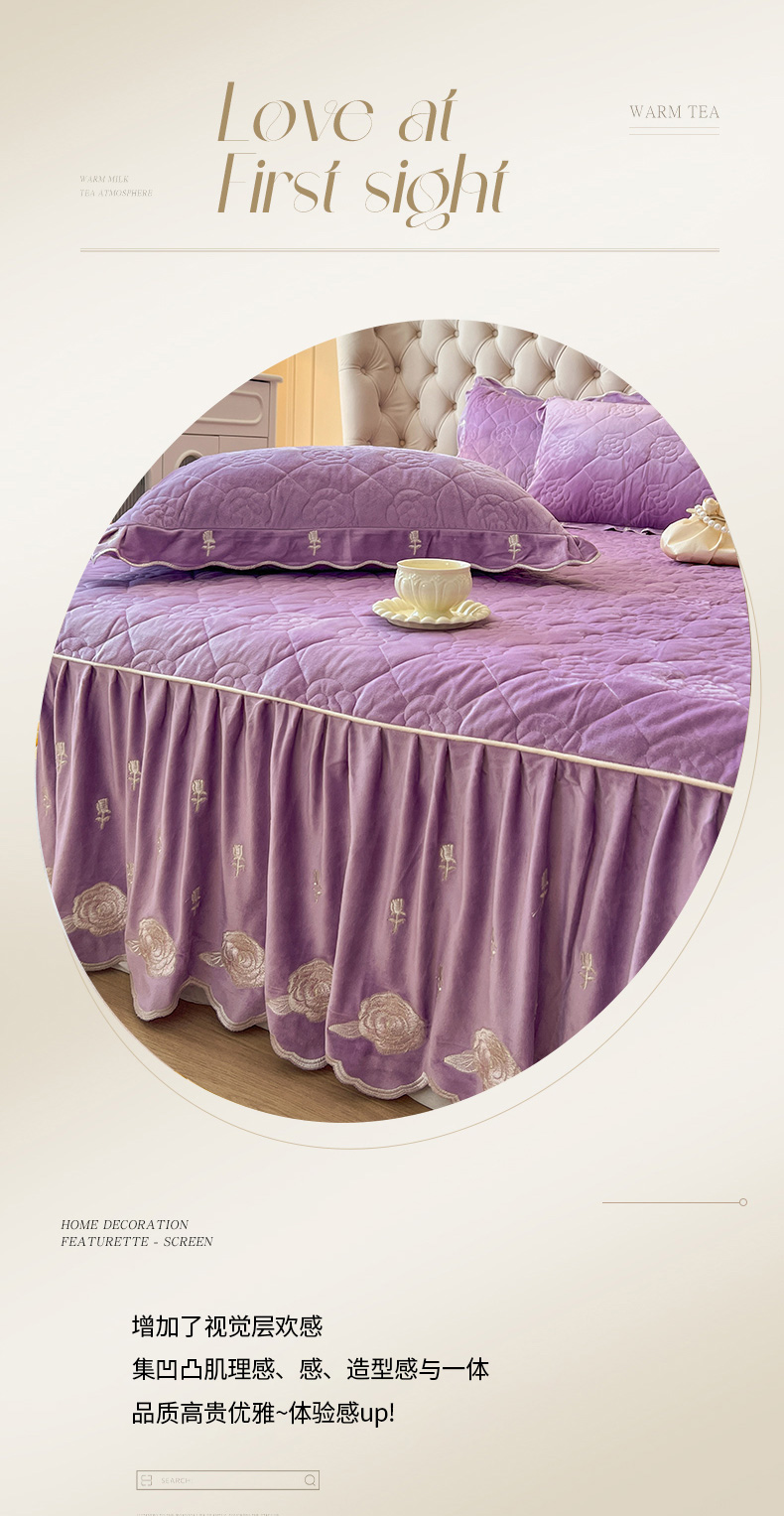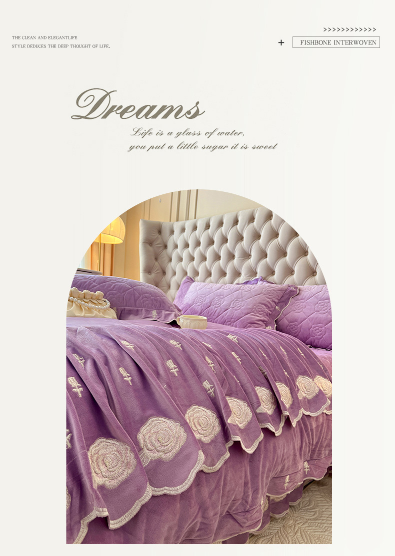 当前位置: 91家纺网 > 商品网购 > 床品套件 > 四件套 > 宝宝绒四件套 > 麒豆豆 2024新款宝宝绒床裙四件套-晨曦玫瑰 晨曦玫瑰-浪漫紫