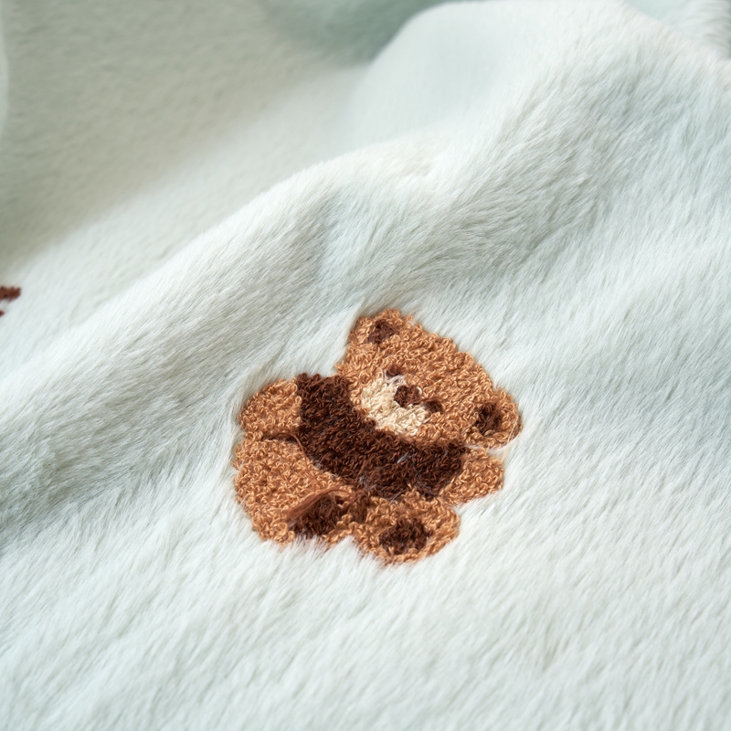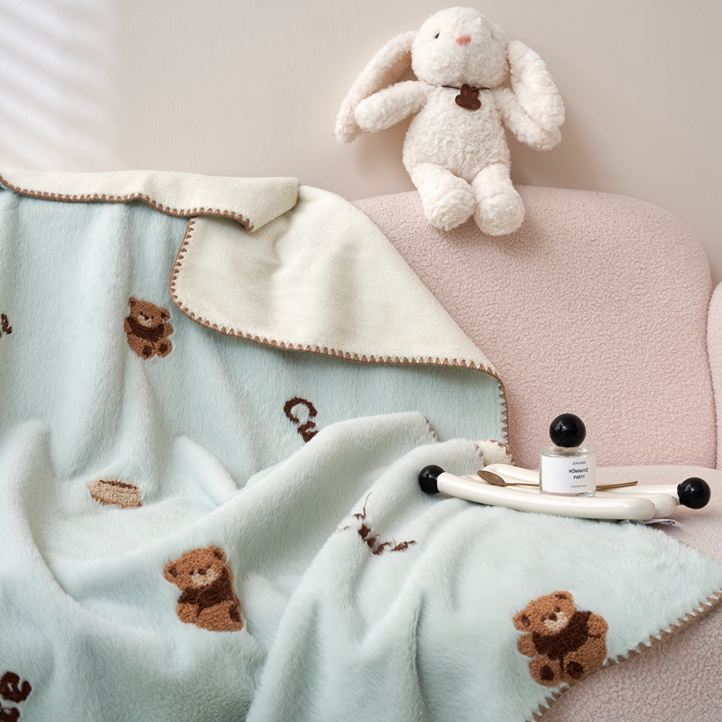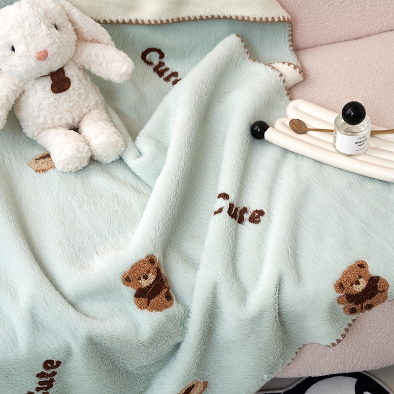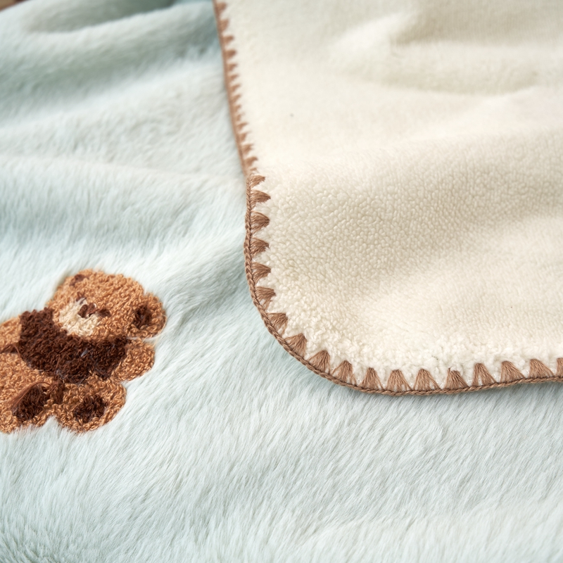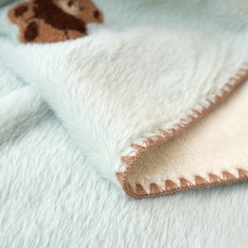 黛舒家居 2024新款兔毛绒北极绒立体毛巾绣毛毯 小熊蓝