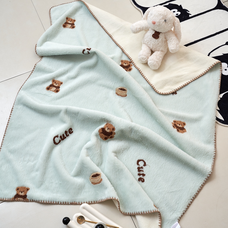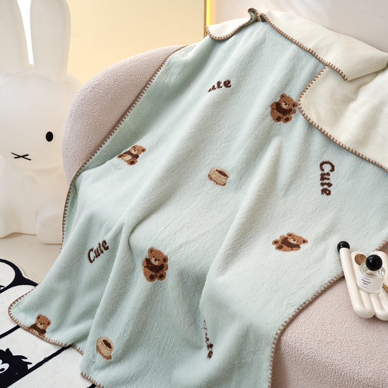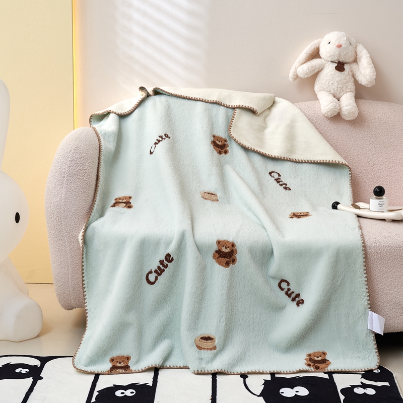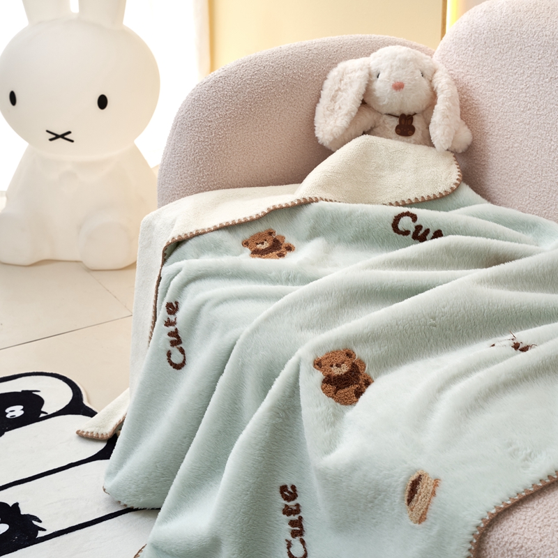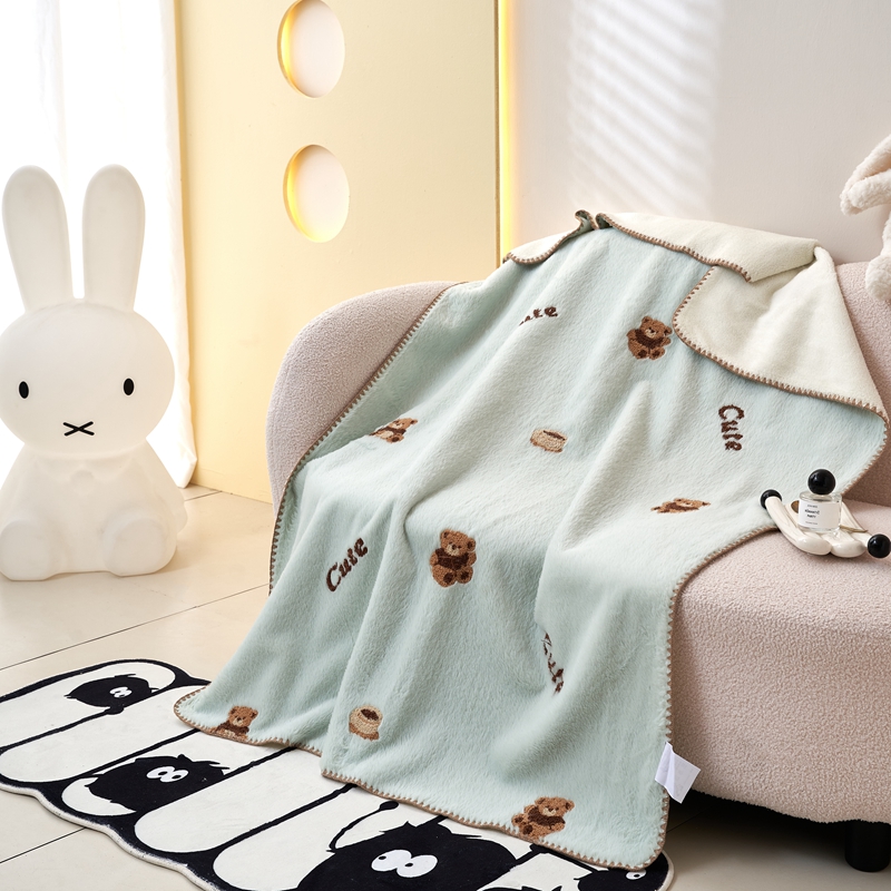 黛舒家居 2024新款兔毛绒北极绒立体毛巾绣毛毯 小熊蓝