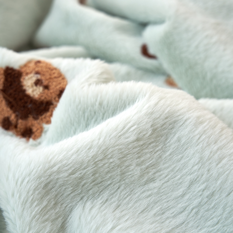 商品名称:黛舒家居 2024新款兔毛绒北极绒立体毛巾绣毛毯 小熊蓝