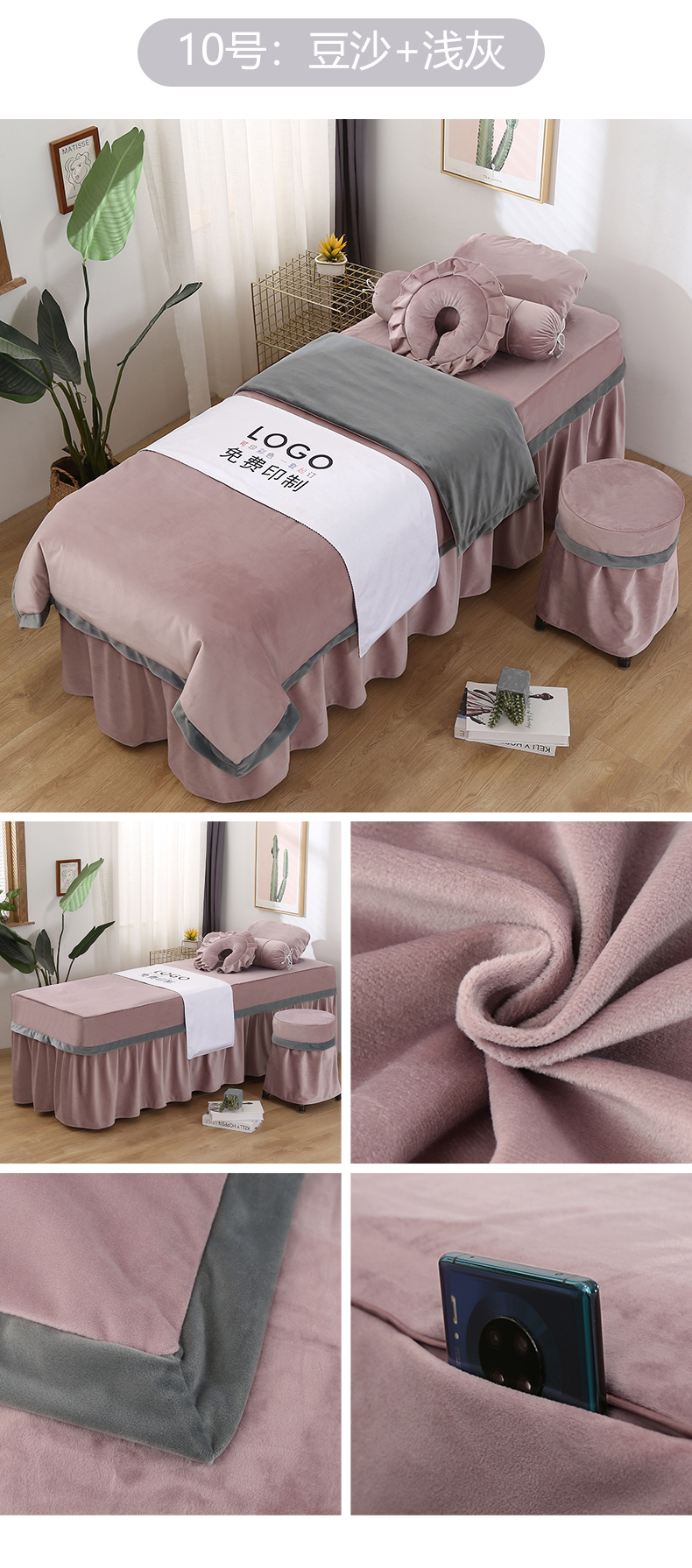 琪宝阁 2024新款立体绒小时代美 容床罩套件 10号:豆沙+浅灰