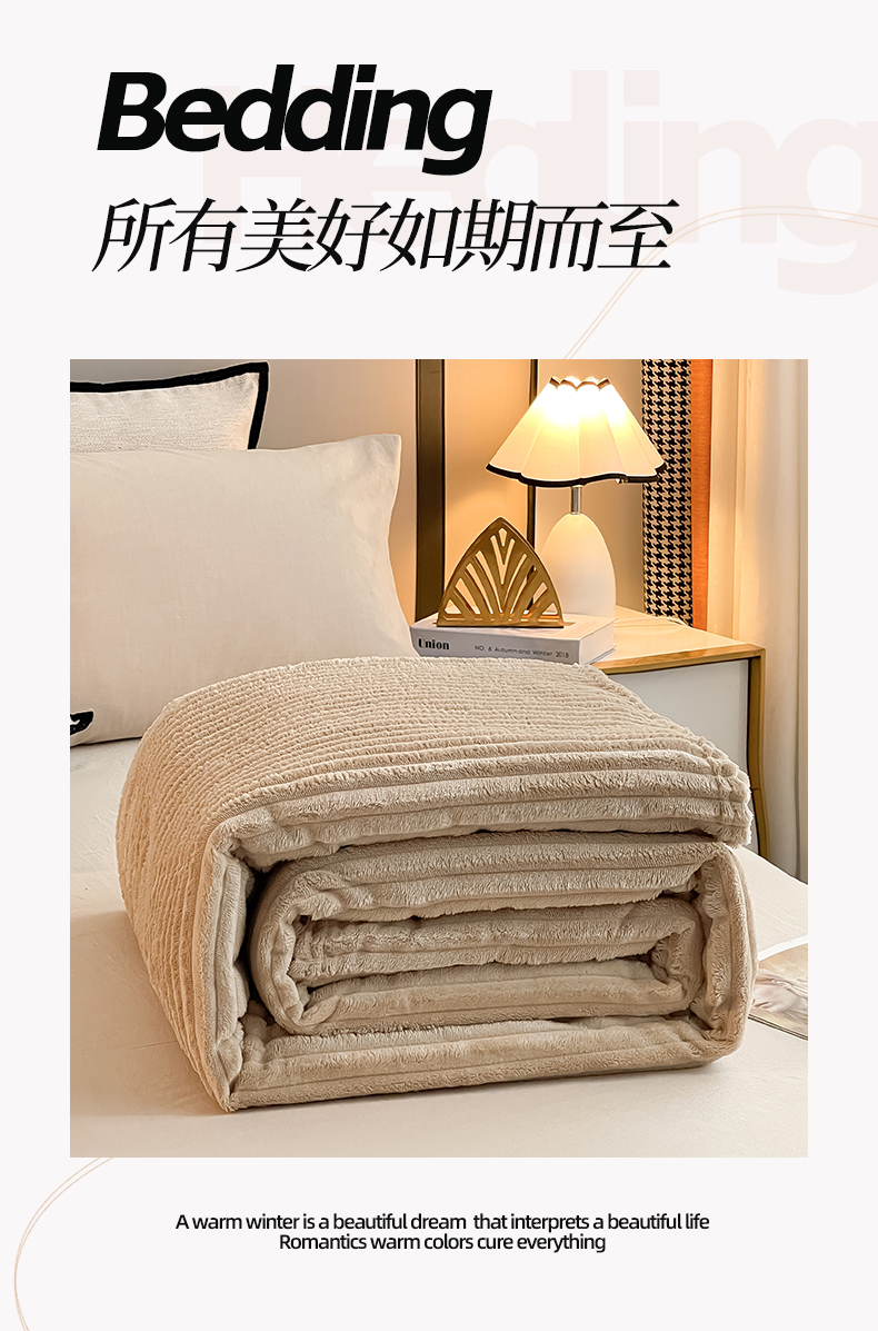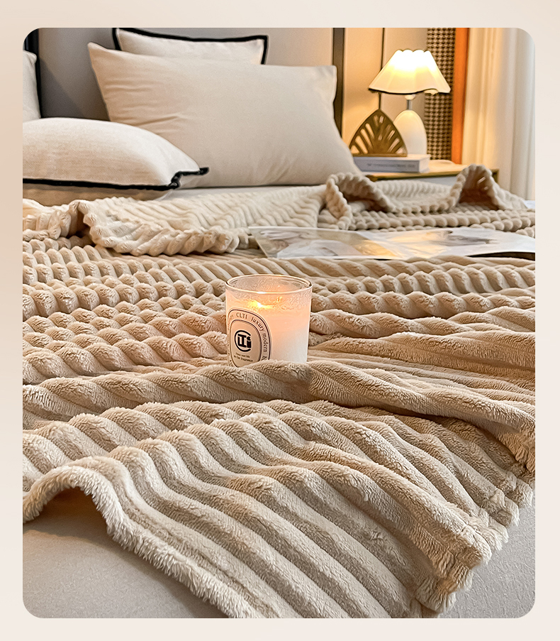 一帆毯业 (总)跨境外贸2025新款仿兔毛宽抽条牛奶绒盖毯,抽条白色,抽条粉,抽条卡其,抽条浅灰,抽条深灰,粉,绿色,紫色,果绿,黑色