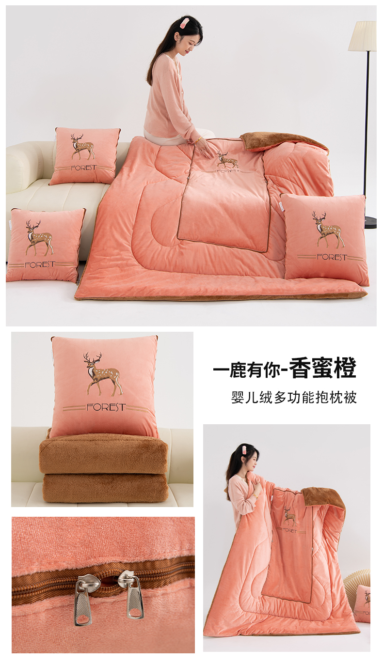 商品名称:翰轩家居 2024新款婴儿绒多功能抱枕被-一鹿有你 一鹿有你-香蜜橙