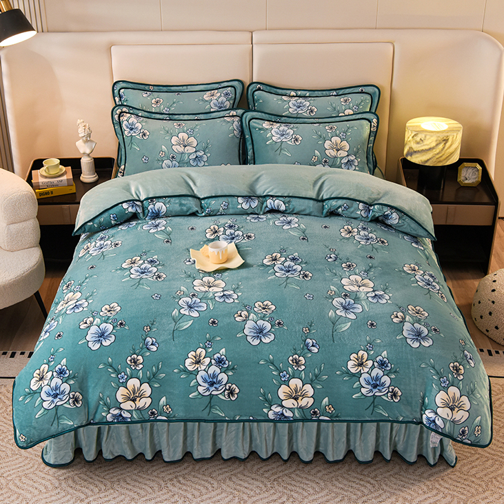 商品名称:馨梦缘 2025直播爆款8.5斤牛奶绒四件套加厚保暖床裙金貂绒 春晓