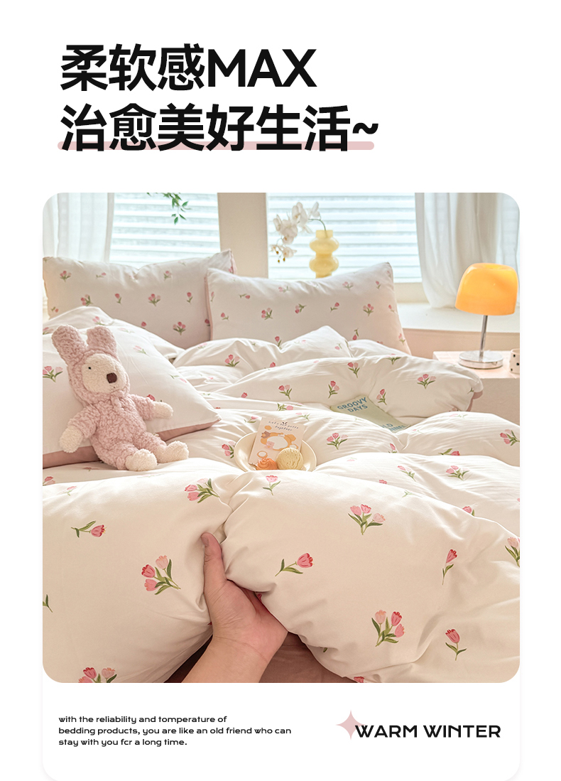 • 91家纺网 家纺一手货源 找家纺 多品家纺 2025新款超柔水洗软糯云朵棉单被套 朵朵郁金香