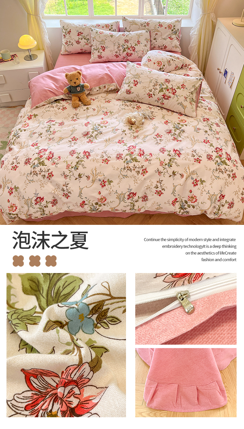 商品名称:2025新款全棉纯棉磨毛印花四件套轻奢时尚 泡沫之夏