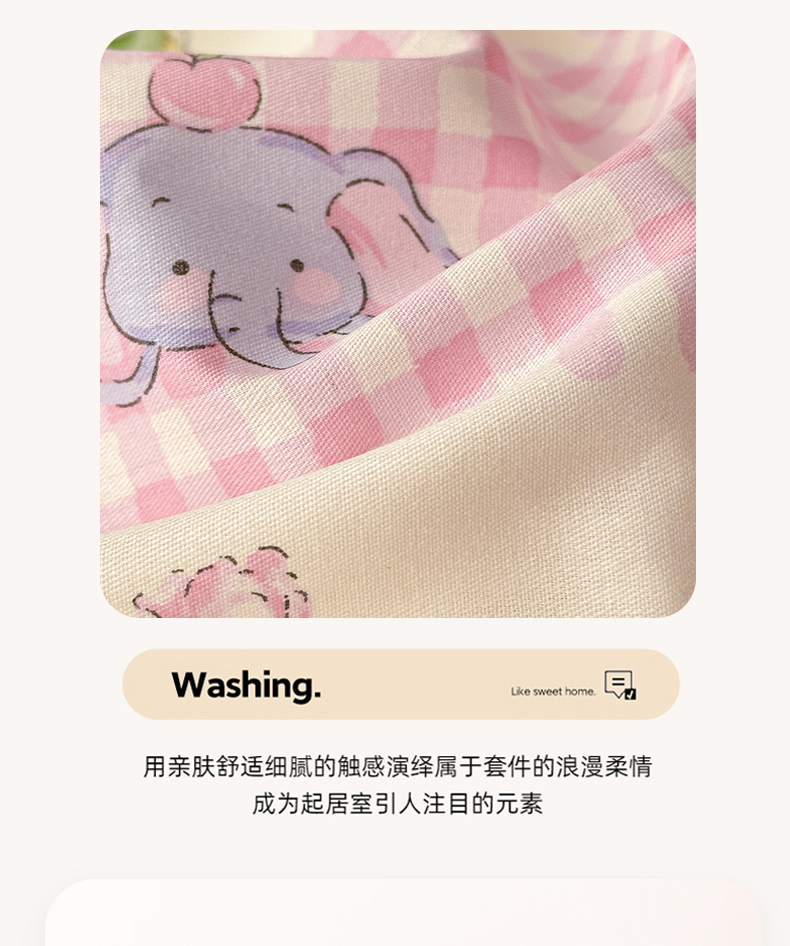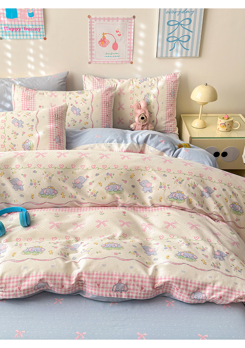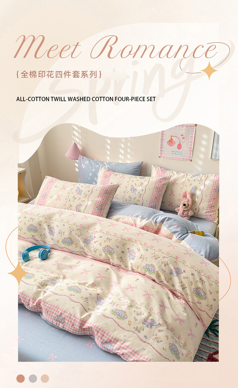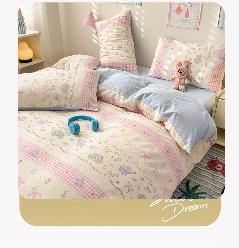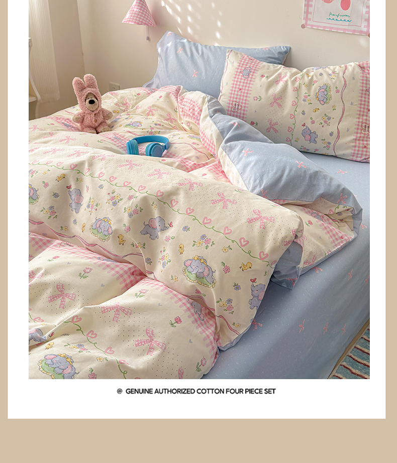 商品名称:曼之夏 2025新款全棉印花四件套 花环小象